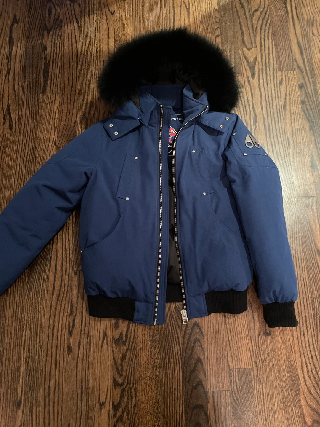 Moose Knucklers kids blue bomber jacket with fur hood