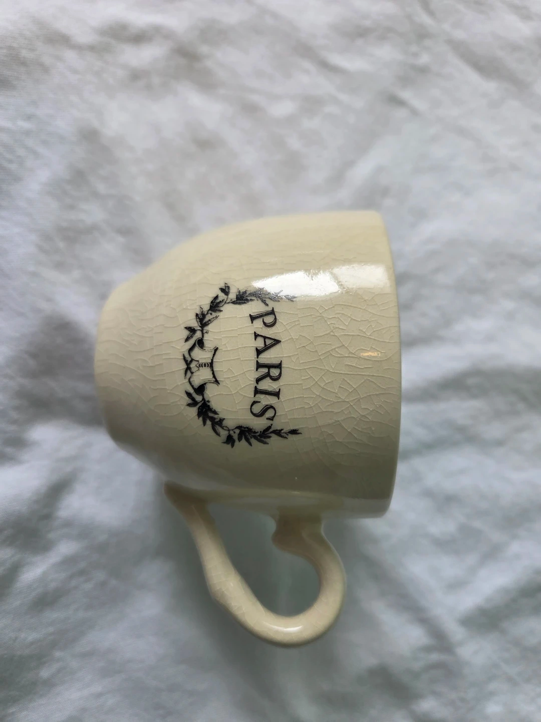 Each cup features a black Paris design and heart-shaped handles.