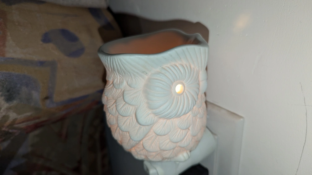 Adorable owl-shaped Scentsy plug-in warmer. Perfect for adding fragrance to any room. Includes three wax melt packs. Gently used, excellent condition.