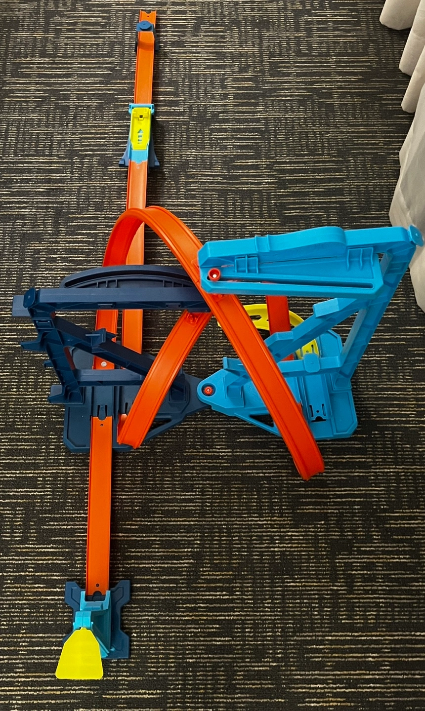 New with box Hot Wheels Track Builder Unlimited track set. Includes loops and connectors with the hot wheels. Used once condition. Suitable for kids, collectors and enthusiasts