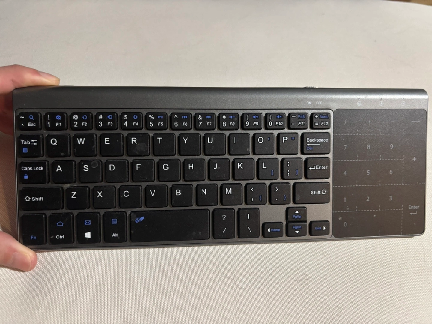 Compact 2.4G wireless keyboard. Features integrated touchpad. Good to use for TV/from couch .