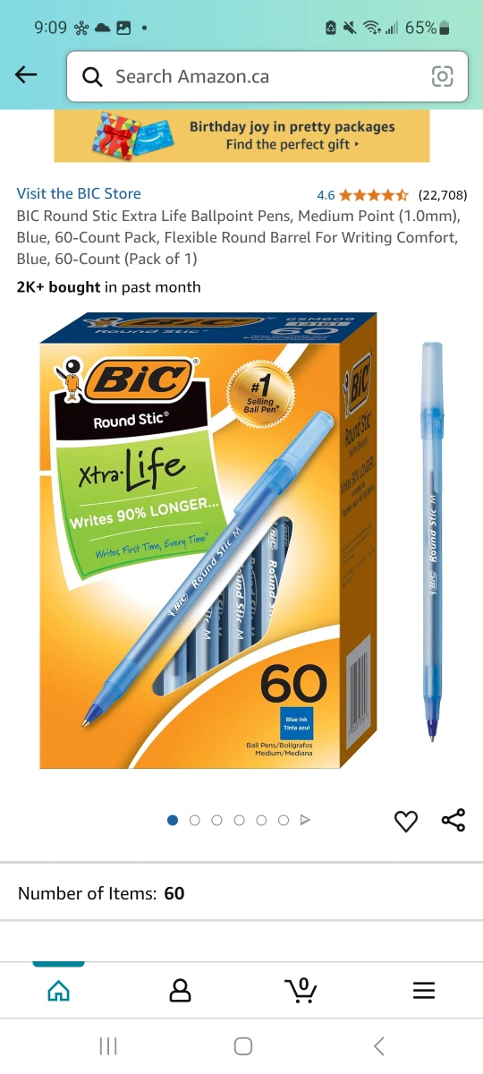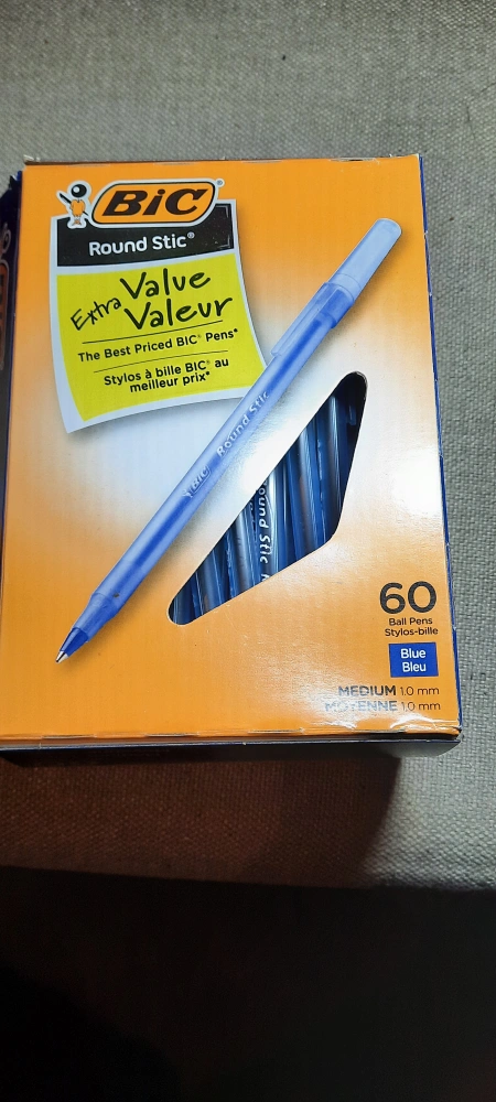 Bulk pack of 60 blue BIC Round Stic pens. Medium point (1.0mm). Extra Life; writes longer. Flexible round barrel for writing comfort. Got this from the office... not going to use it. Retails for $9 on Amazon. https://a.co/d/azztvou