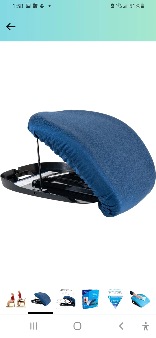A non-electric lifting cushion. Easy to use and portable. Washable cover. Supports up to 340 lbs. Hydraulic lift. Requires no electricity. Great for seniors and those with mobility issues.