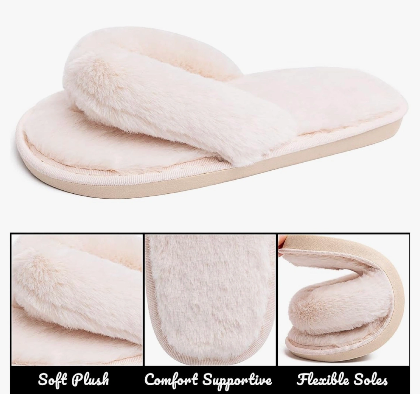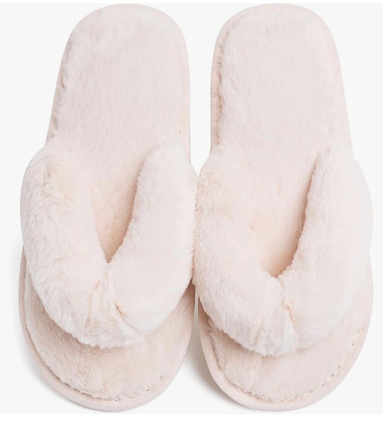 Fluffy Faux Fur Flip Flop Slippers, size 6, new