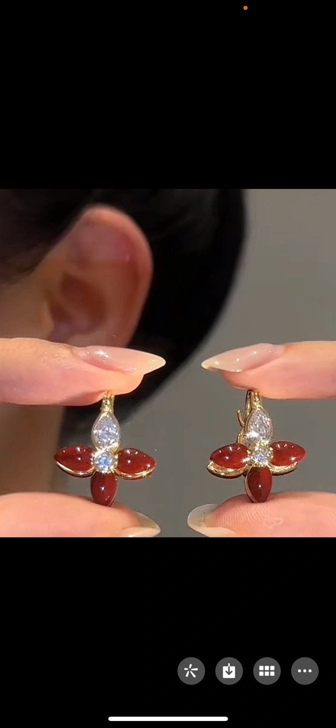 18k gold plated elegant Red Flower Earrings