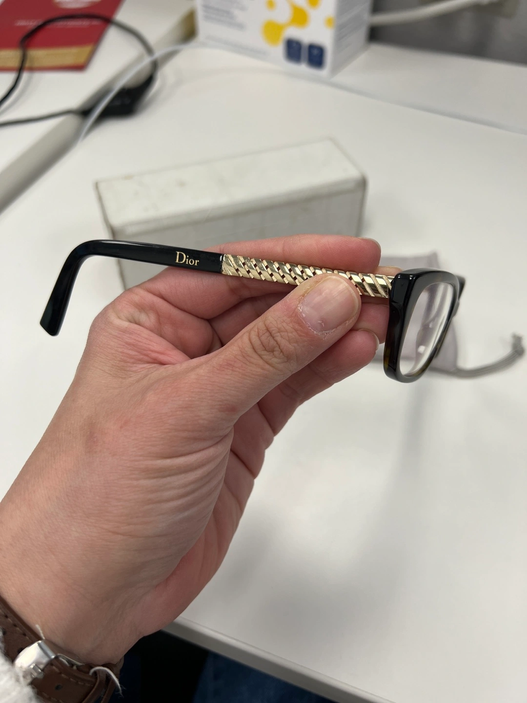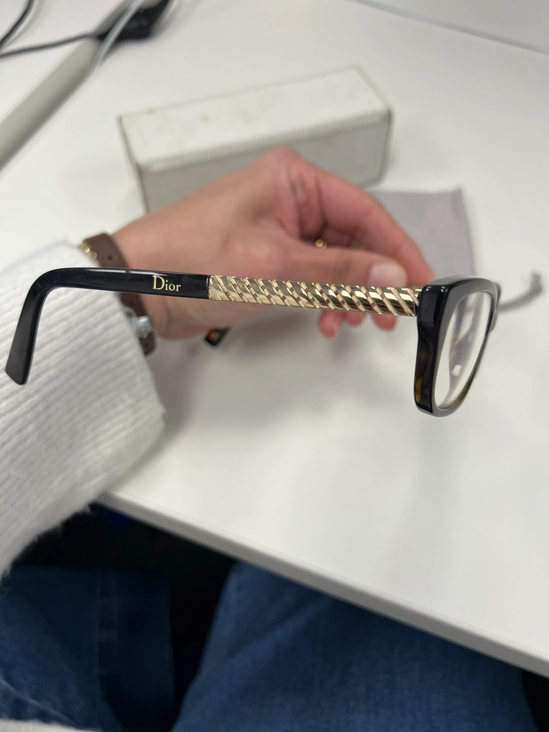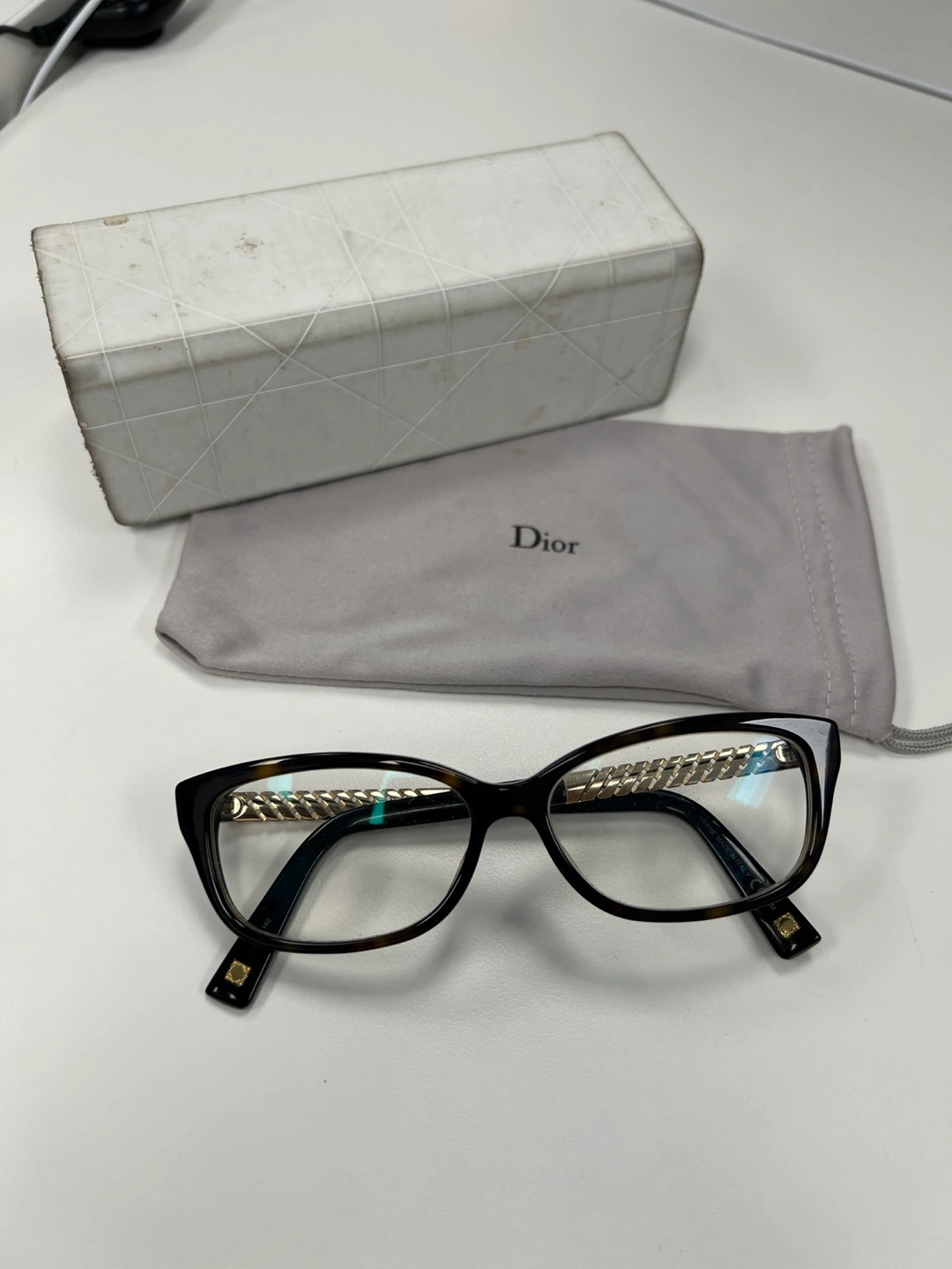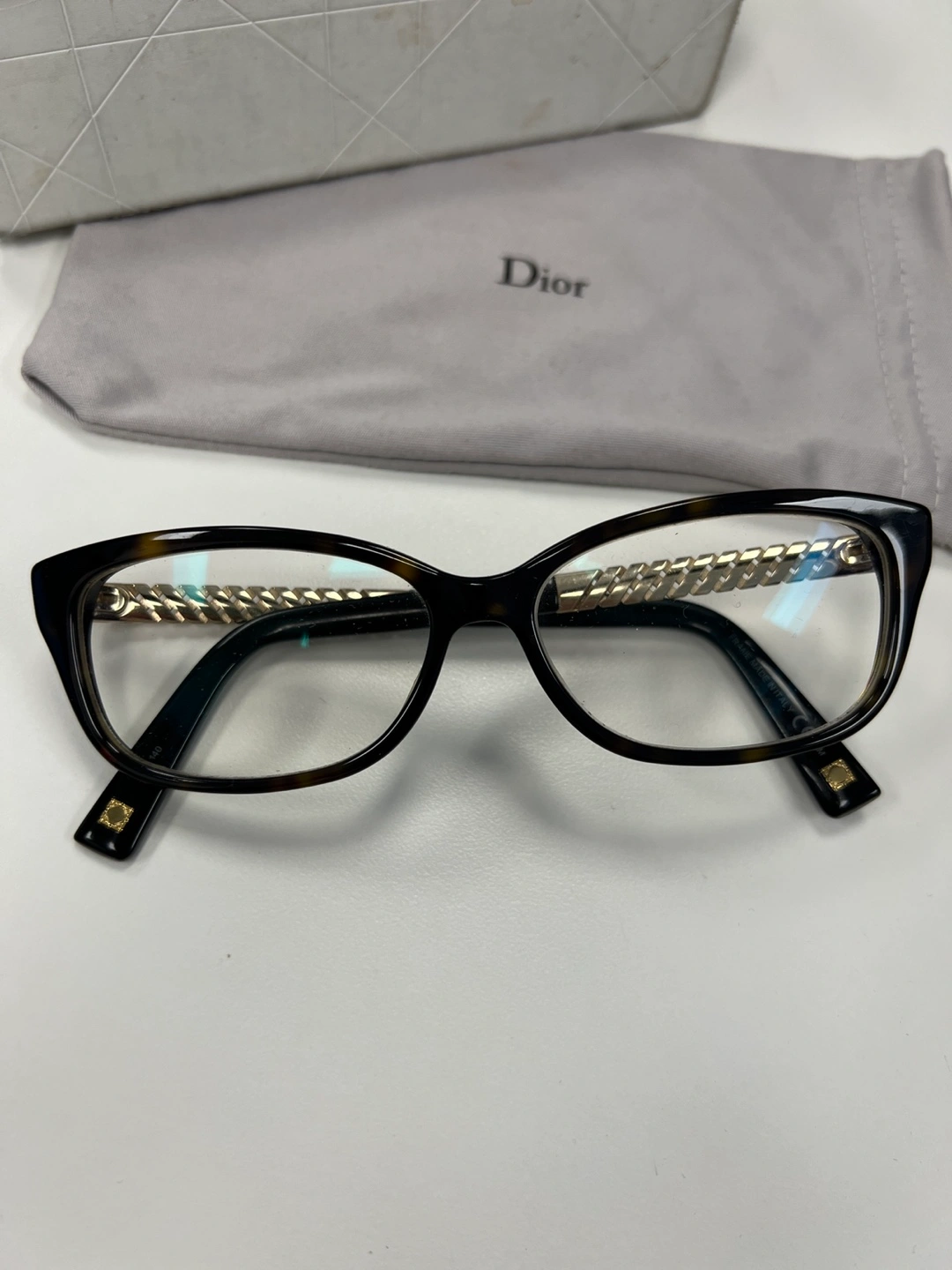 Women's eyeglasses. Tortoise shell frames. Gold detailing on temples. Includes case and cleaning cloth. Pre-owned but in very good condition. No damages.