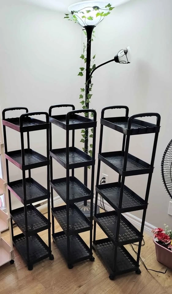 Brand new! 5 Layer black Plastic with wheels and 4 hangers
