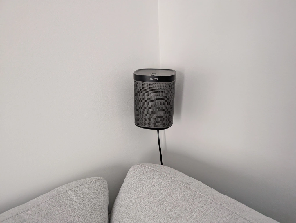 Excellent condition. Pair of Sonos Play 1s currently used as rear surrounds. Includes power cord and wall mounts. Great sound quality. Perfect for any room.
