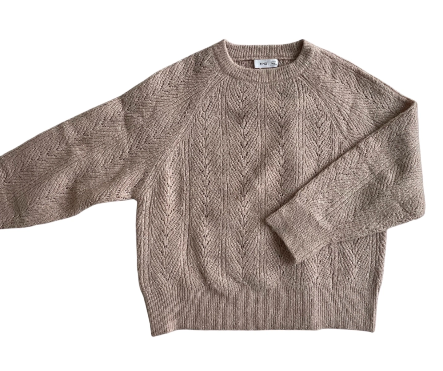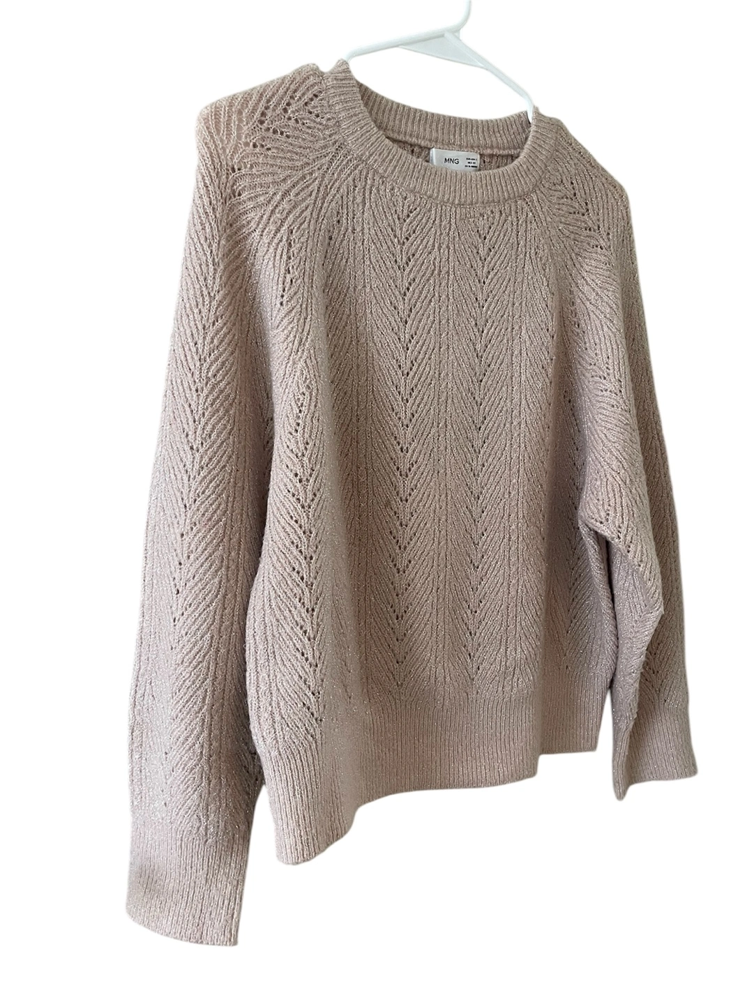 Lightweight knit sweater. Blush pink colour. Chevron pattern. Long sleeves. Crew neck. Size Small.