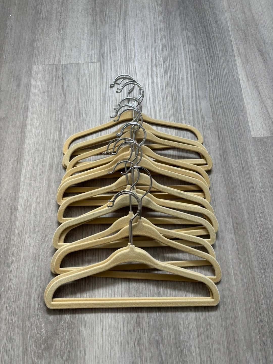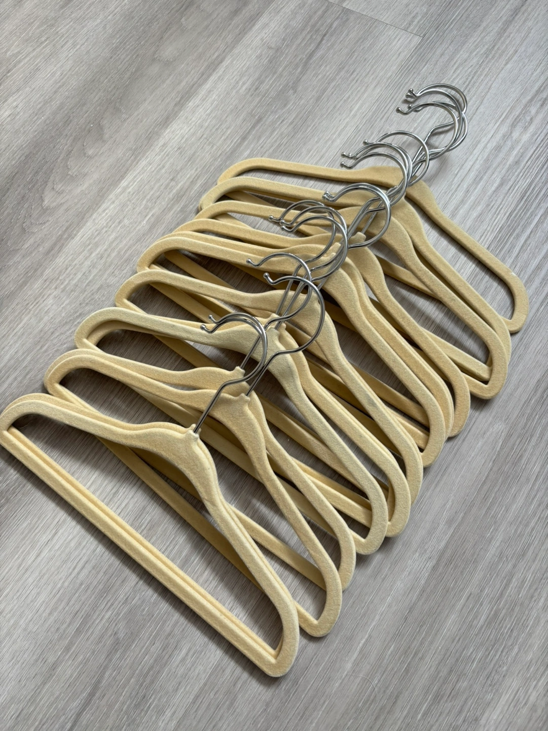 17 beige velvet clothes hangers. Non-slip material. Silver metal hook