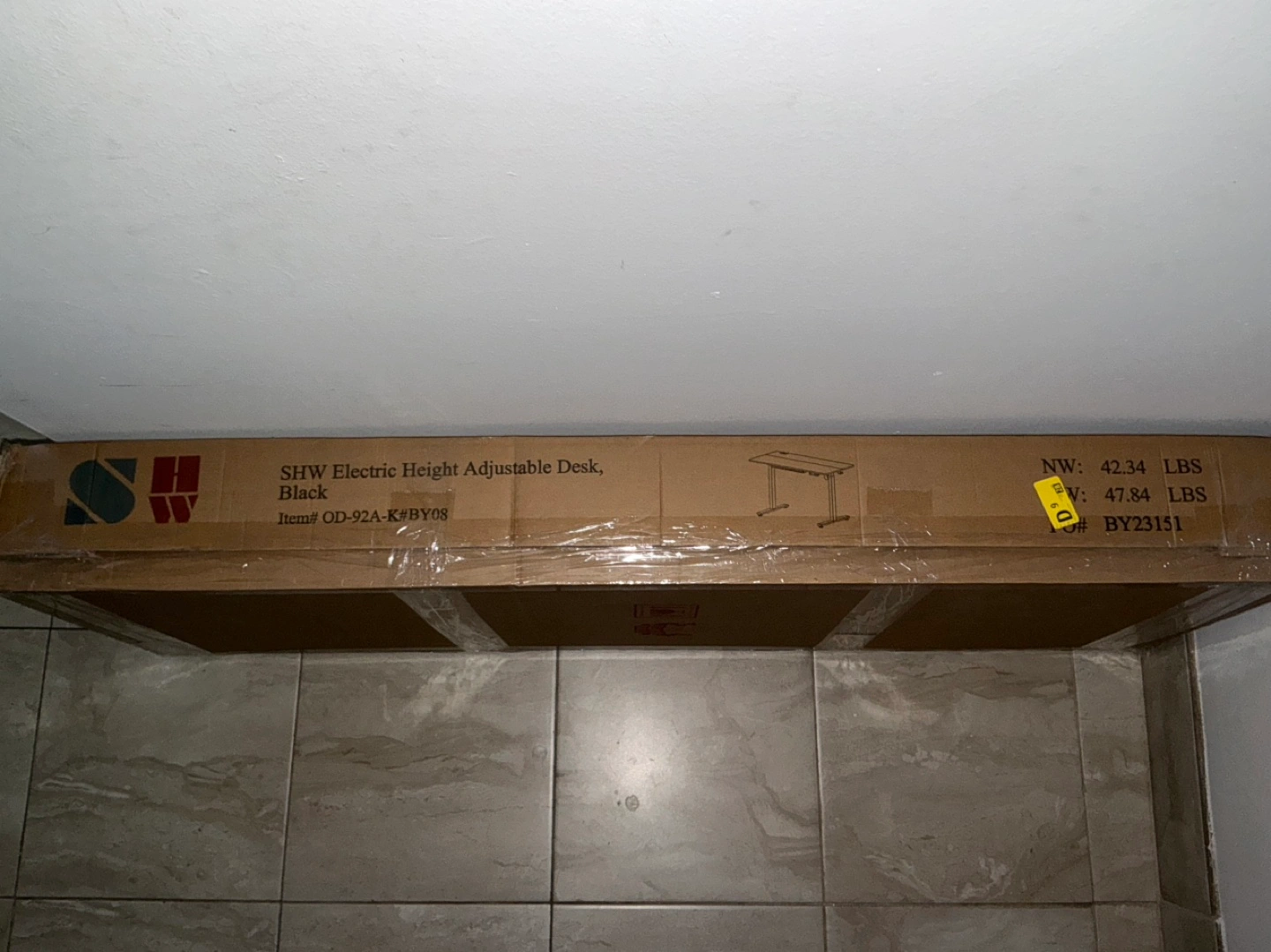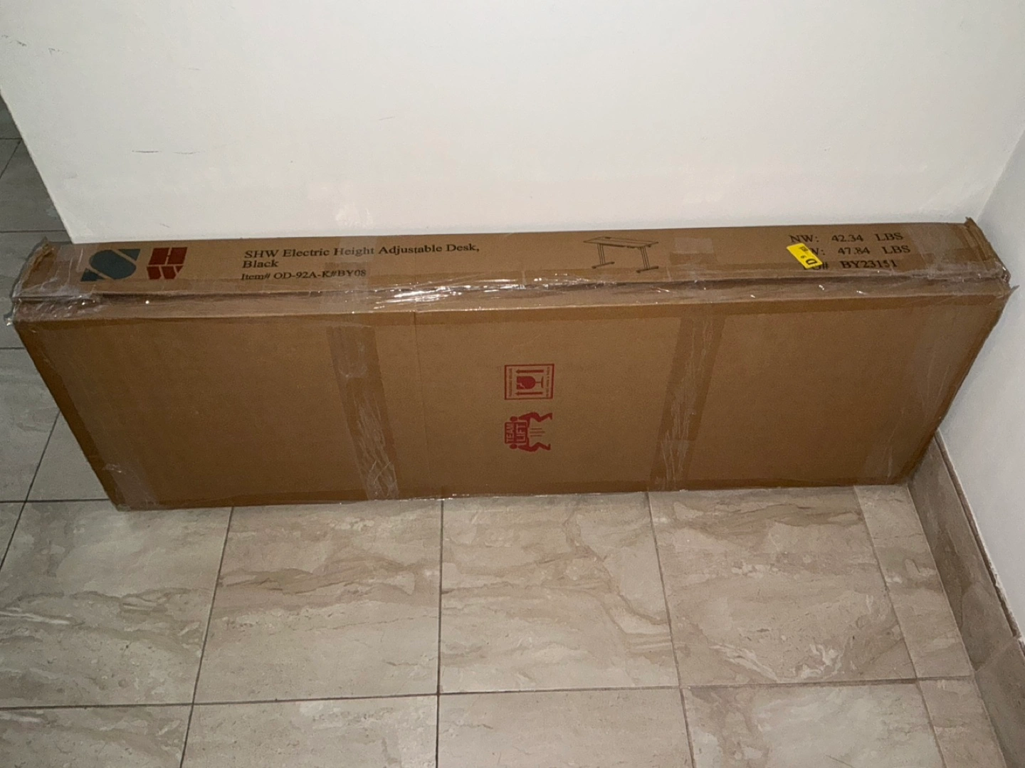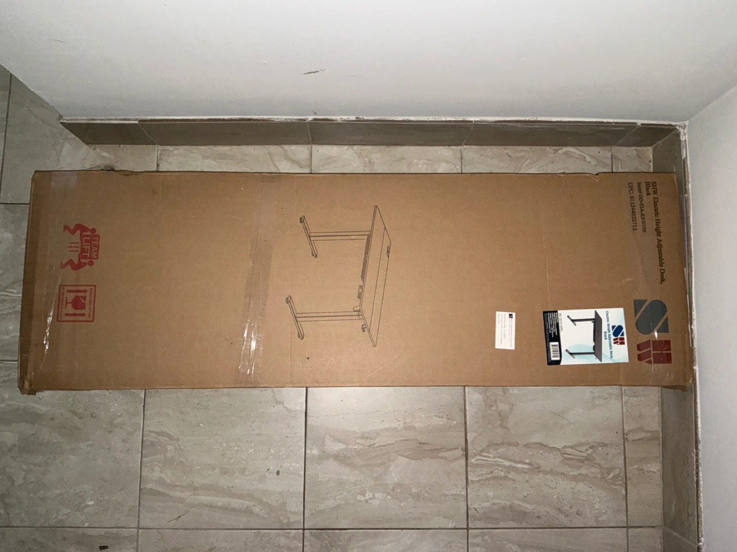 Brand new SHW electric height adjustable standing desk. Black colour. 100 x 60 cm. Commercial grade. Easy assembly. Perfect for home or office.