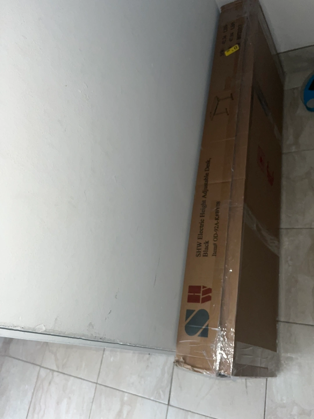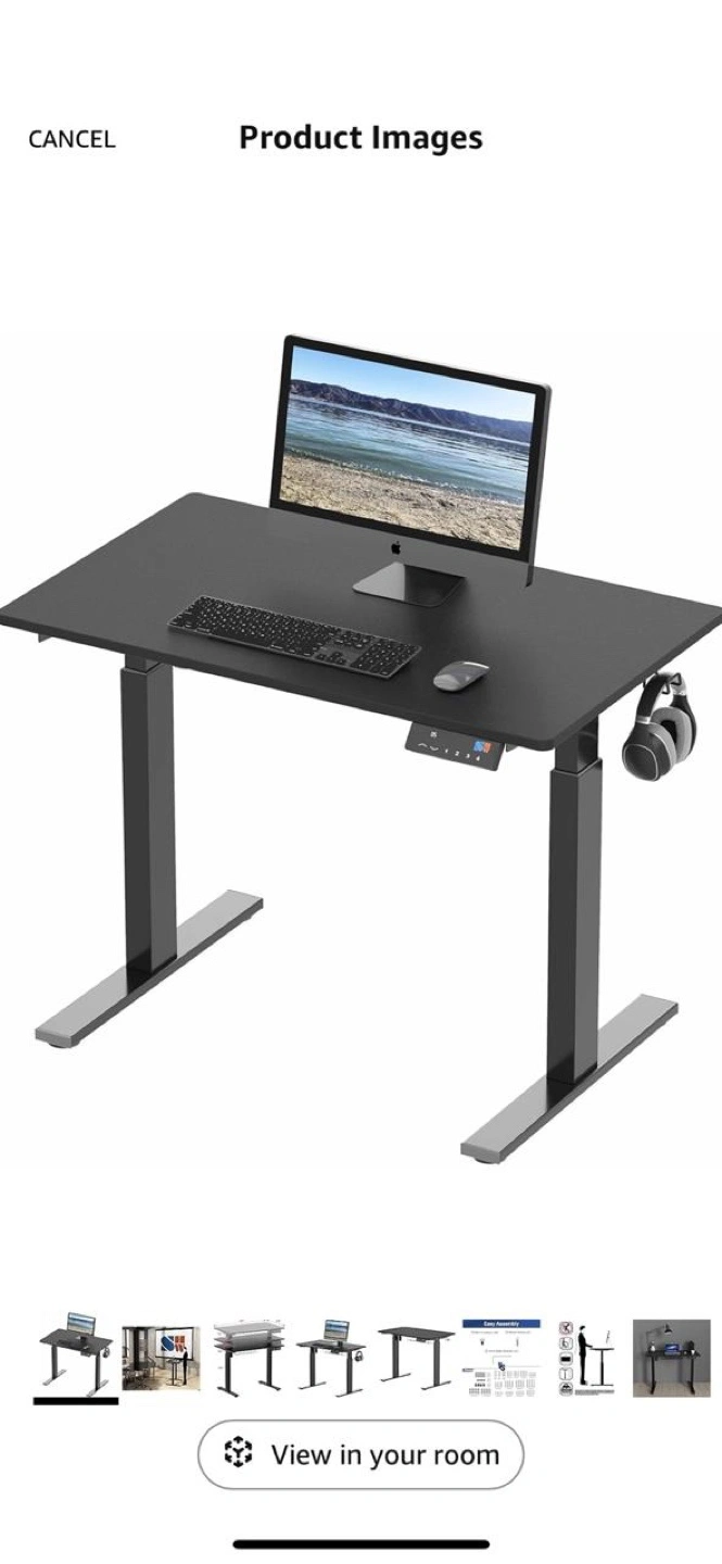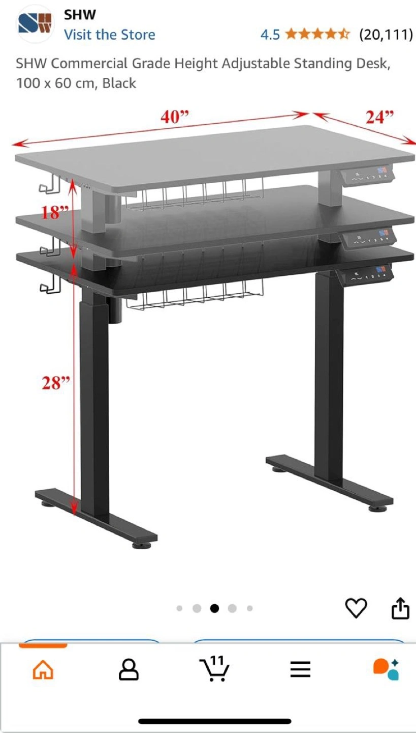 Brand new SHW electric height adjustable standing desk. Black colour. 100 x 60 cm. Commercial grade. Easy assembly. Perfect for home or office.