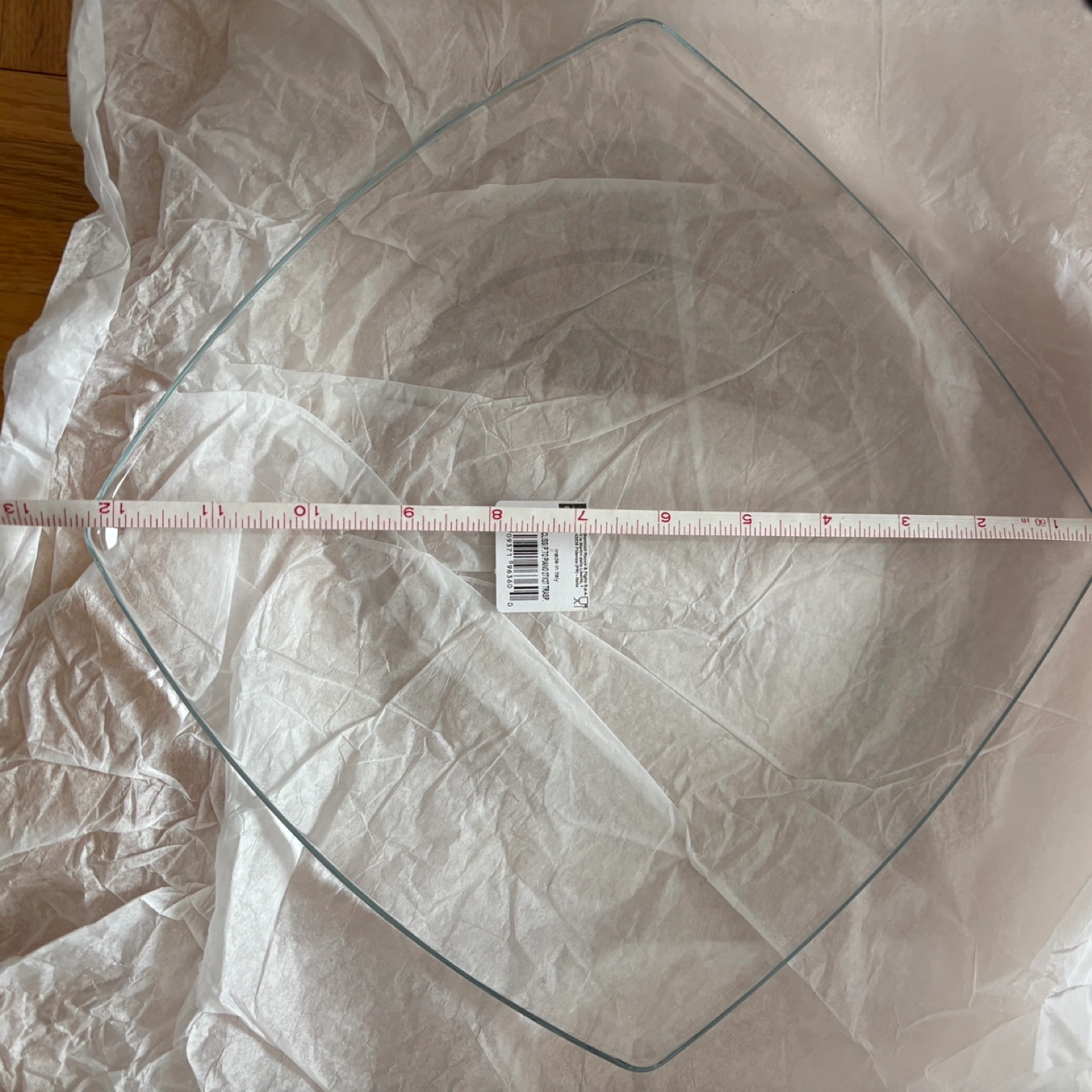 Clear glass square plate. Made in Italy. Slightly rounded edges. Perfect for serving or display.