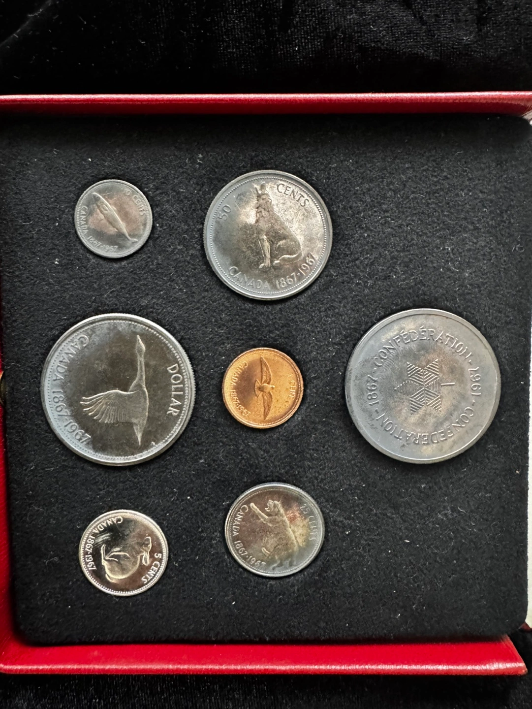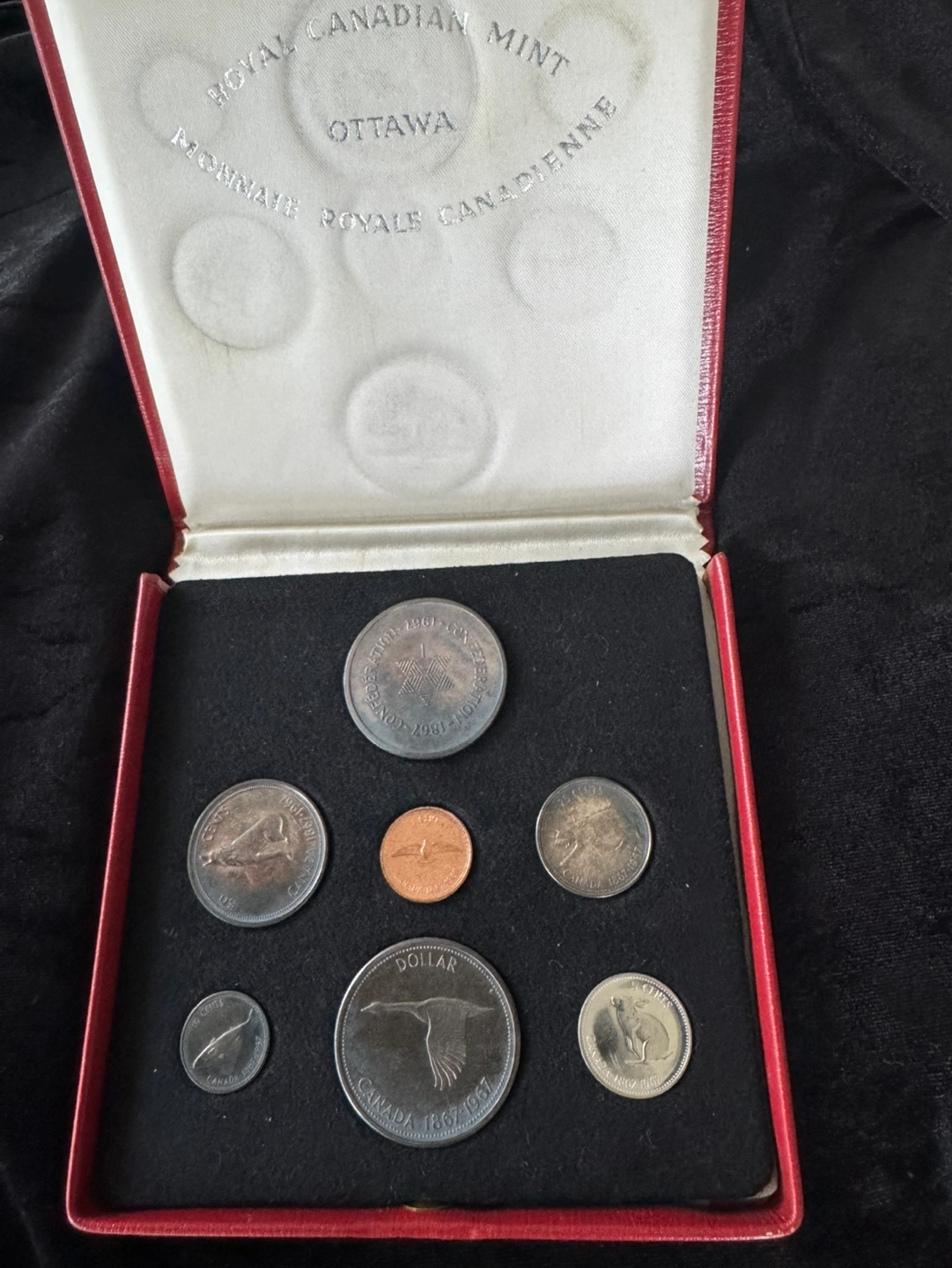 Complete set of 1967 Canadian Centennial proof coins. Original Royal Canadian Mint case included. Great collectible item.