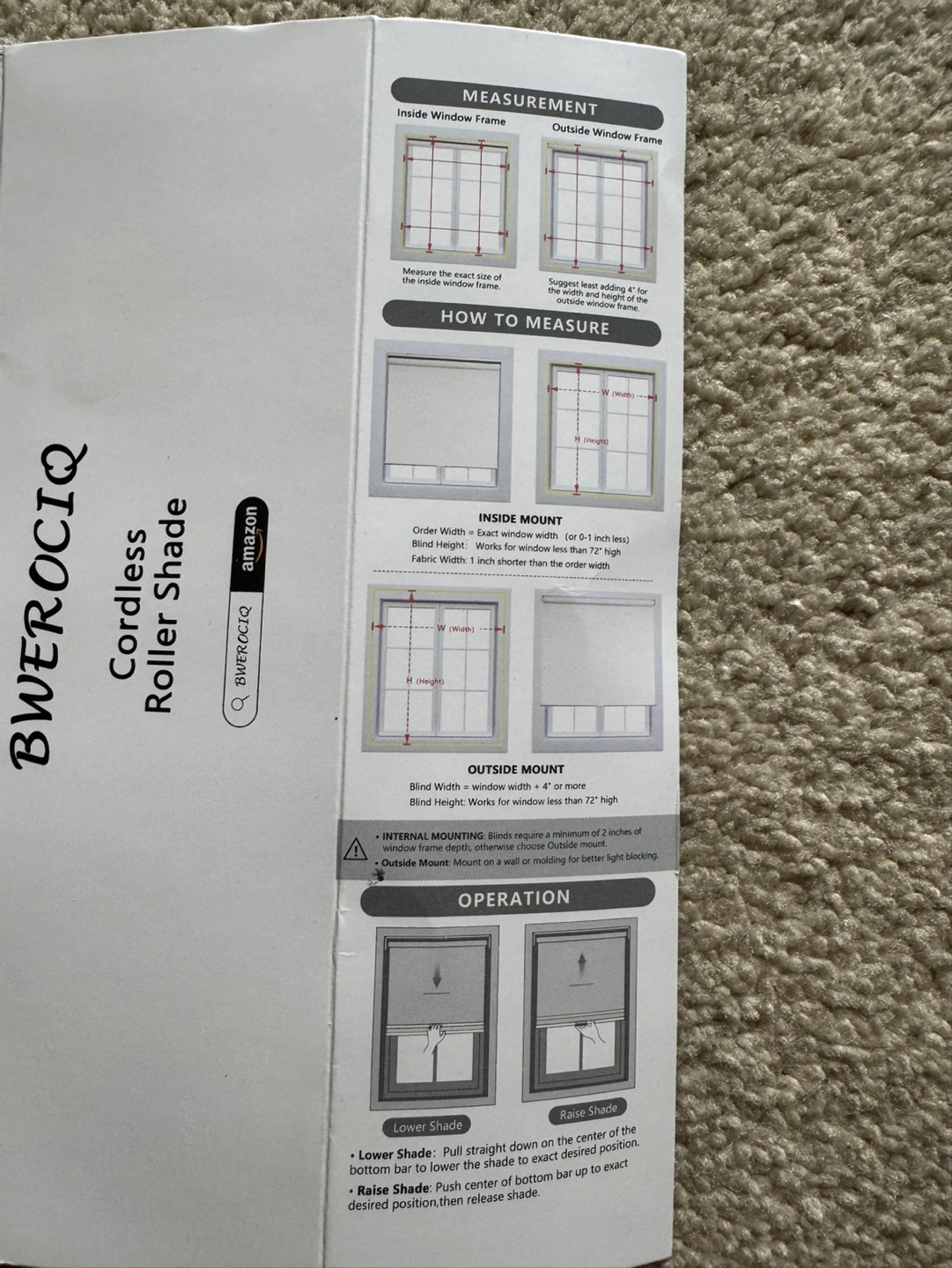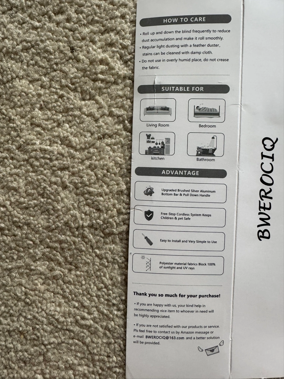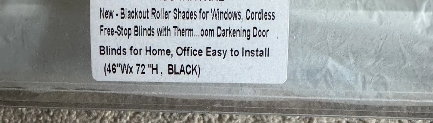 Black cordless roller shade. Easy to install. Suitable for living room, bedroom, kitchen, or bathroom. 100% polyester material blocks sunlight and UV rays.
