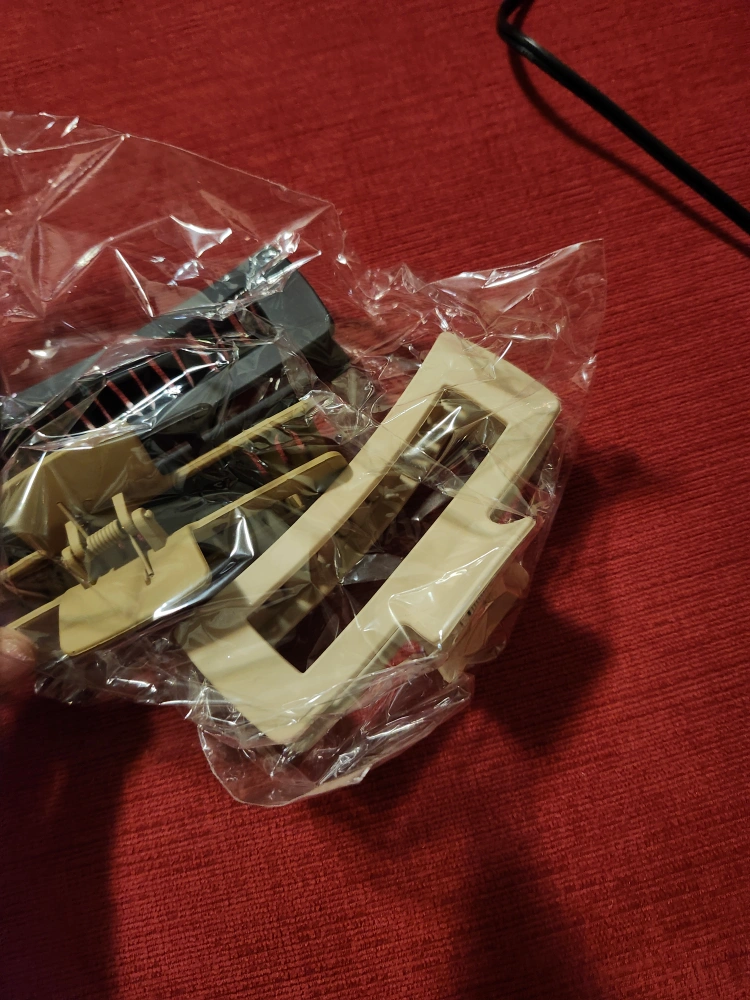 Set of three large claw hair clips. One black clip and two beige clips. Great for styling thick or fine hair.