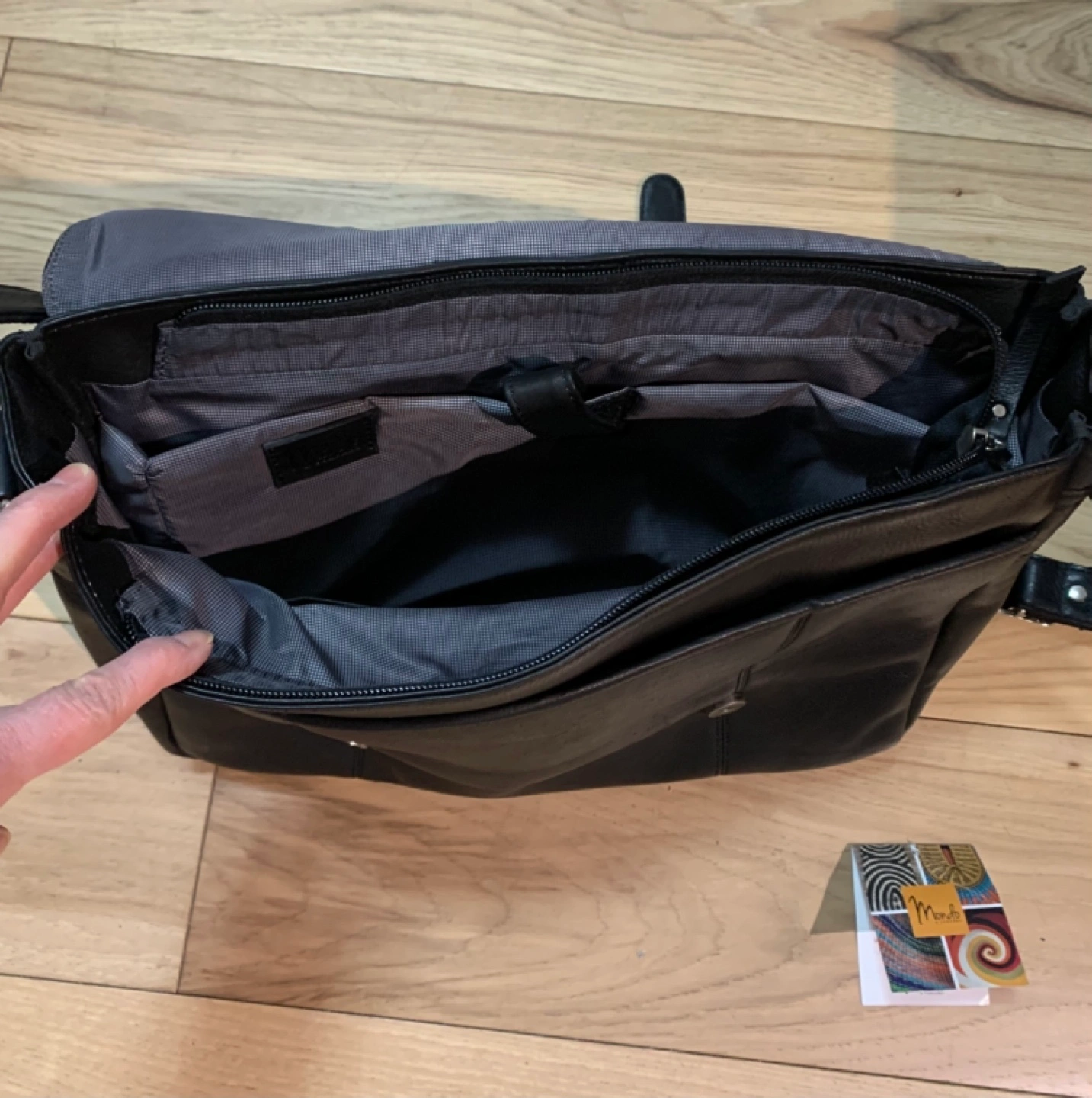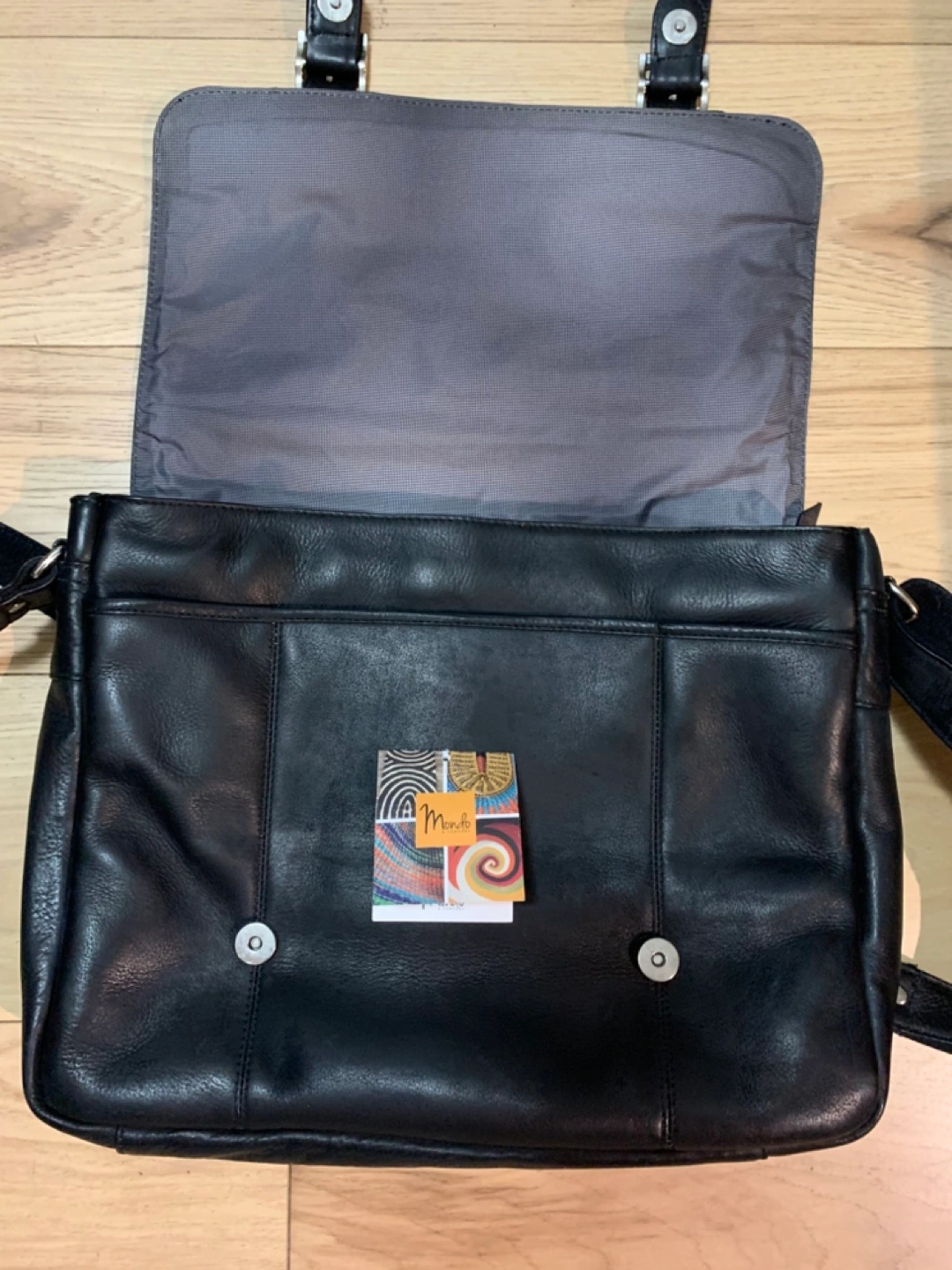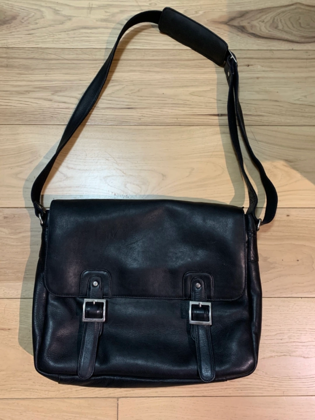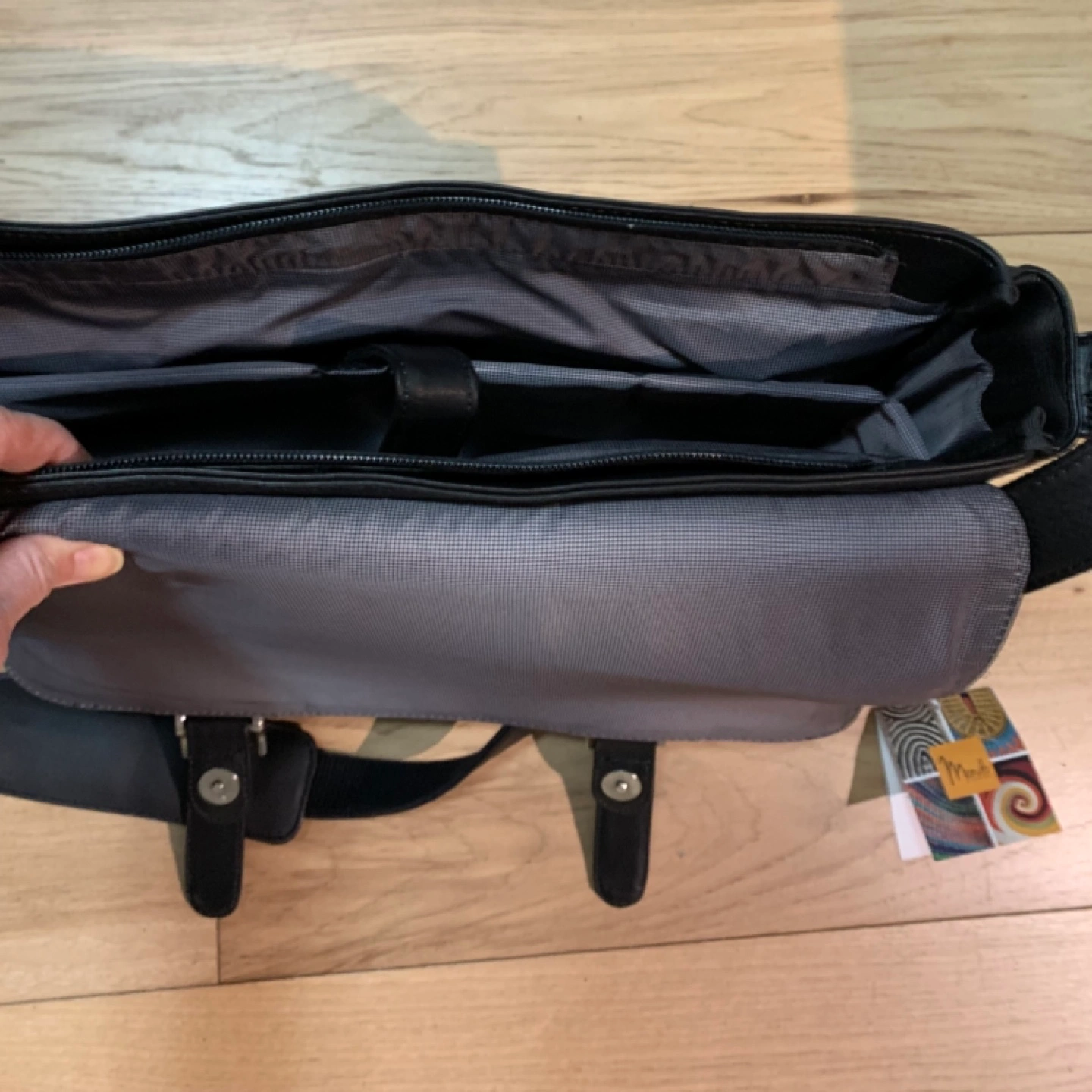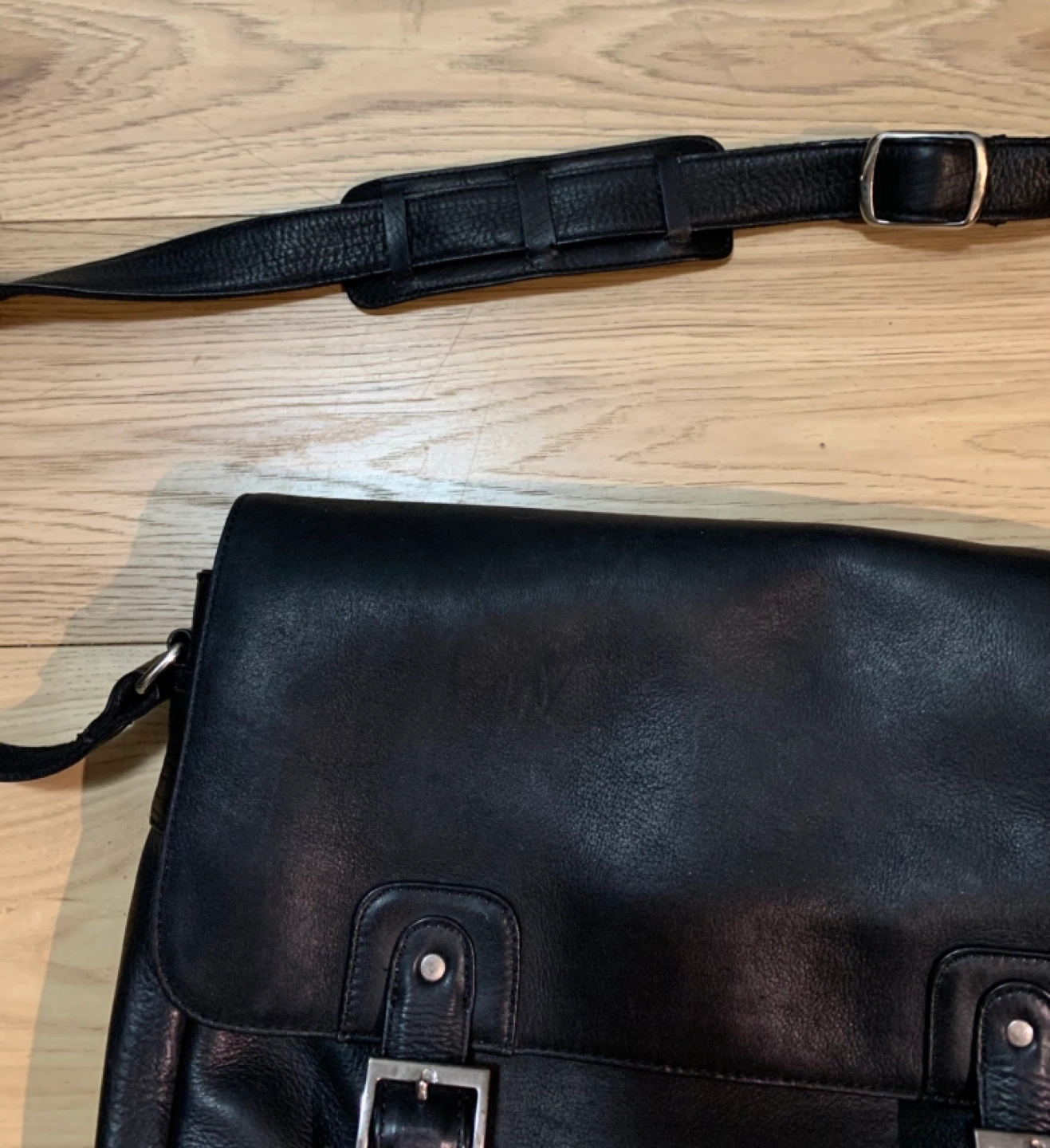 Brand new never used. Black soft leather messenger bag. Adjustable shoulder strap.