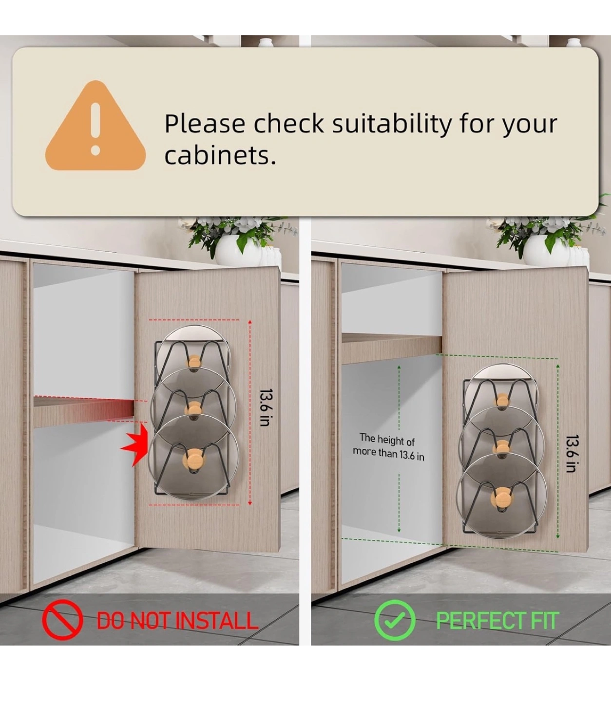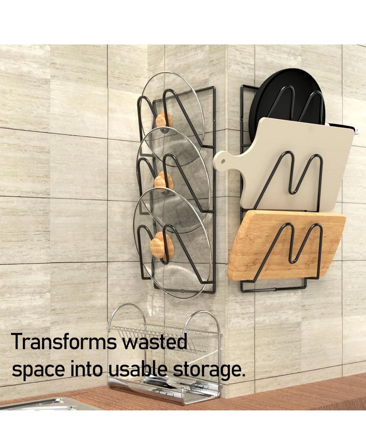 New Space-saving kitchen organiser. Holds lids and cutting boards. Easy installation; adhesive or screw mounting. Durable metal construction. Stylish black finish.
