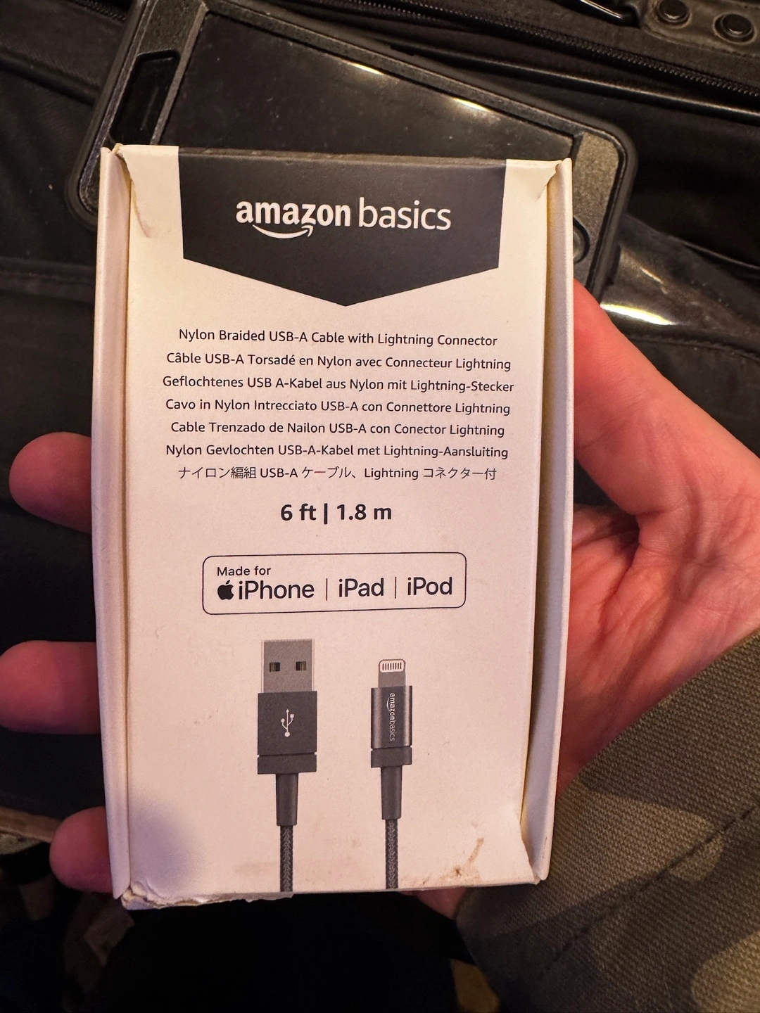 New Amazon Basics USB-A to Lightning cable. 6ft/1.8m long. Nylon braided. Compatible with iPhone, iPad, iPod.