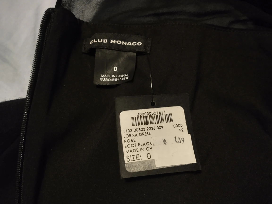 Black Club Monaco dress with a mesh neckline in size 0 Invisible zipper and eye hook closure at the back New, never worn. Still has tags Originally $139 Smoke free, pest free home Cash payment please