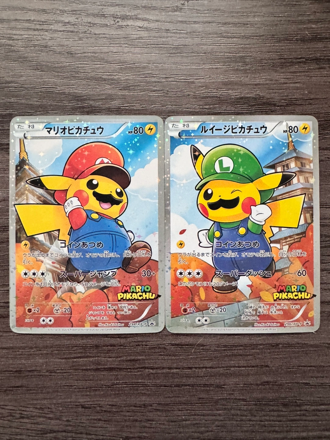 79$20 FOR BOTH‼️ Two collectible Pokemon cards featuring Pikachu dressed as Mario and Luigi. Japanese text. Excellent condition. Custom Made, DIY!! more cards available message me if interested.