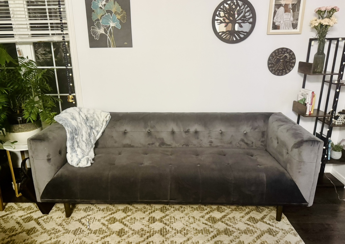 Cozy beautiful 3 seater Velvet Grey Couch- Structube