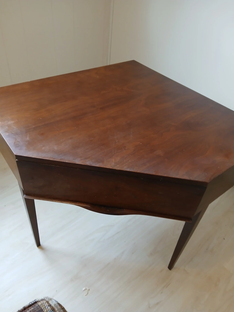 Buy & SellVintage Corner Table with DrawerVintage Corner Table with Drawer$50Dark brown wood corner table. Features one drawer. Simple legs. Good for small spaces.Dimensions33 wide and deep.WHERE TO MEETCheck LocationView MapSELLERDaveStoney Creek747 reviews1 chats·0 favorites·25 viewsSEND CHAT TO SELLERHi Dave! I’m interested in your listing.Hi Dave! I’m interested in your listing.Get the Karrot app to chatSign In to chat