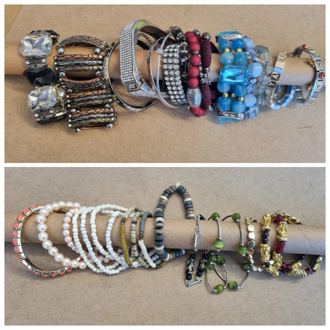 109great collection of bracelets. Variety of styles, colours, and materials. Perfect for layering or just DIY. Includes beaded bracelets, bangle bracelets, and more. Get creative with your outfits!