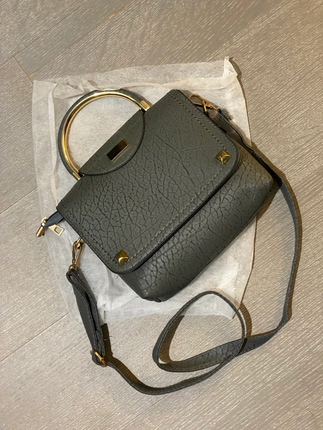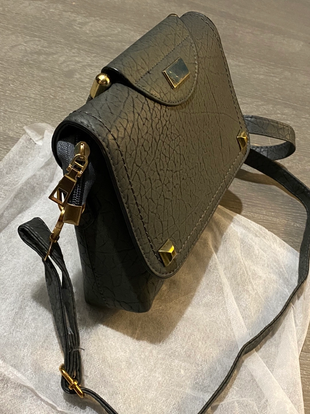 44Brand new purse. Grey colour with gold accent. Adjustable strap. Main compartment has two small pockets and a zippered pocket. Measurement: 8” x 6.5” x 2” bottom Pick-up only near John/King St. (St Andrew subway station)