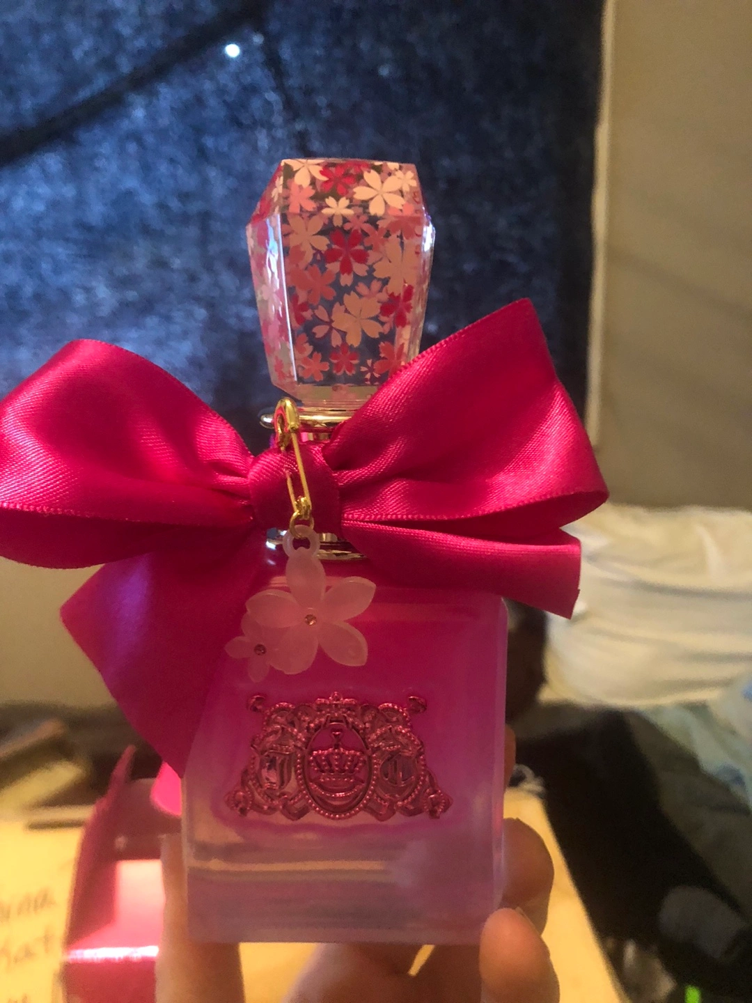50ml bottle. Pink floral design. Beautiful ribbon accent. Comes in original box.
