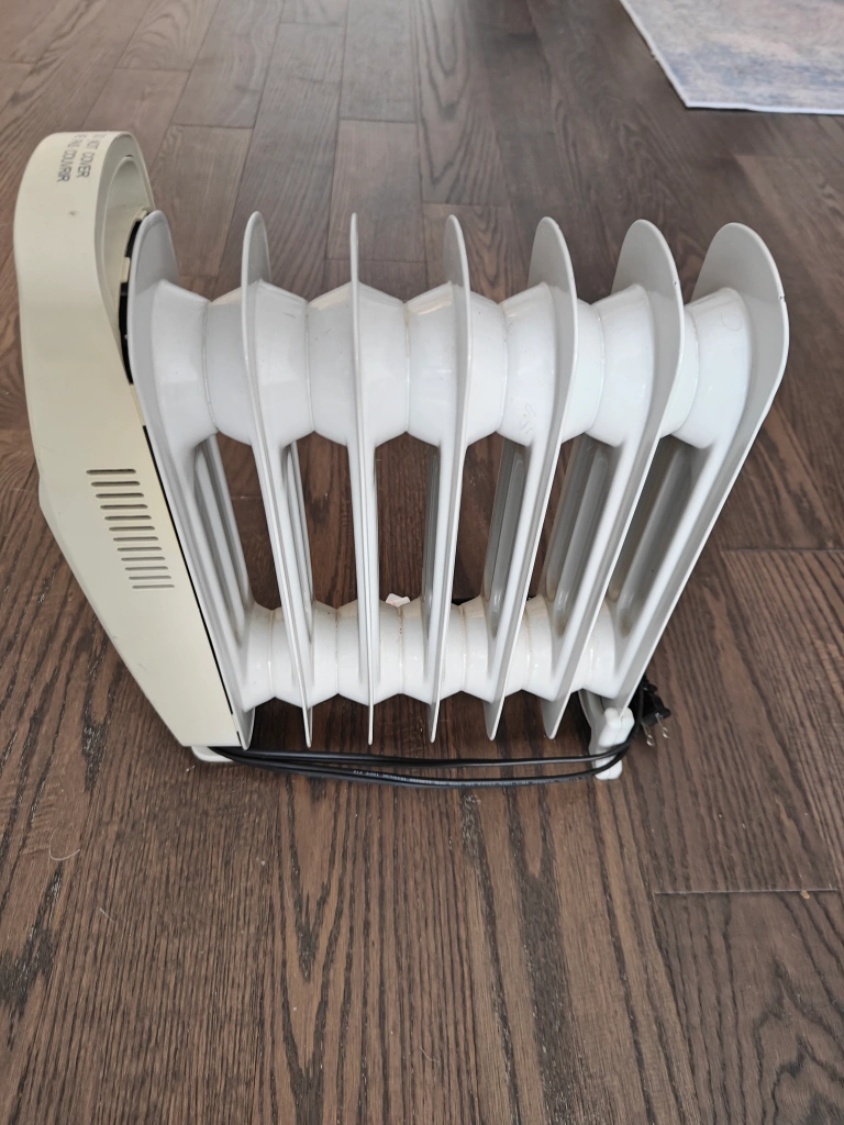 Portable electric heater. Oil-filled design. Multiple heat settings. Easy to use controls. Good condition.
