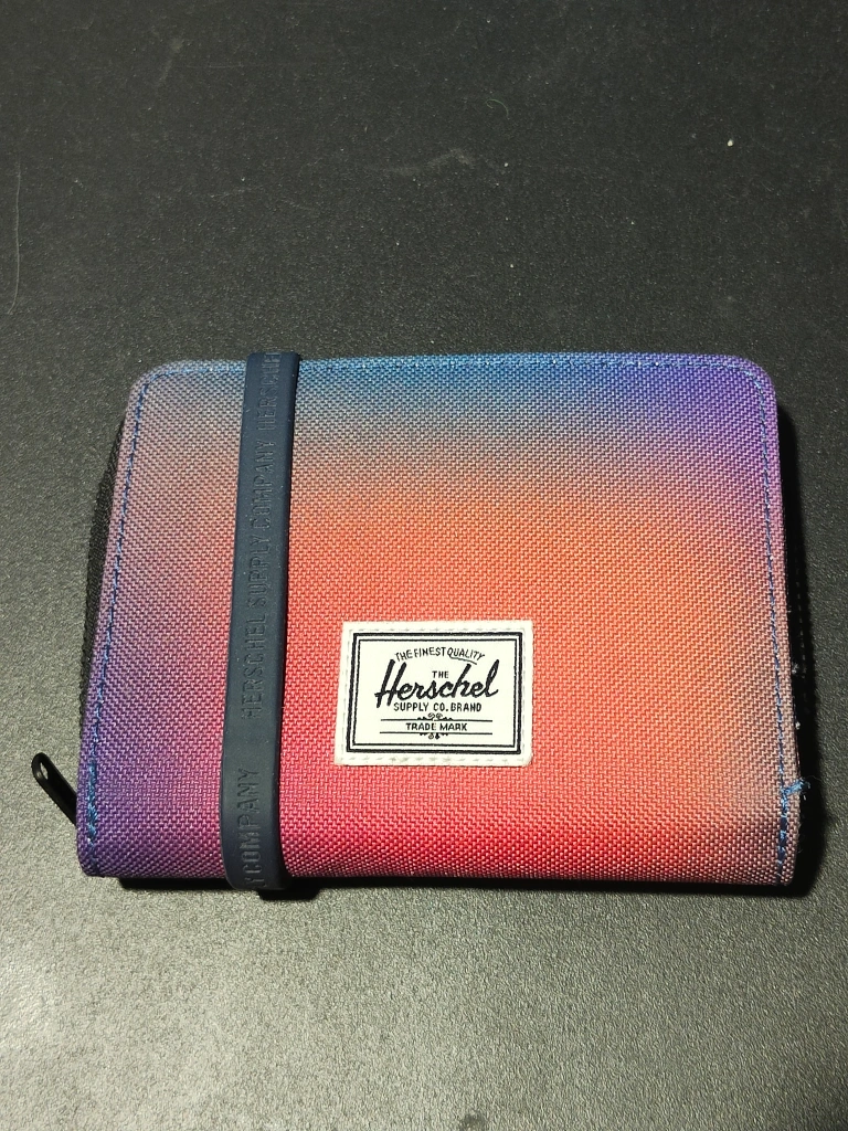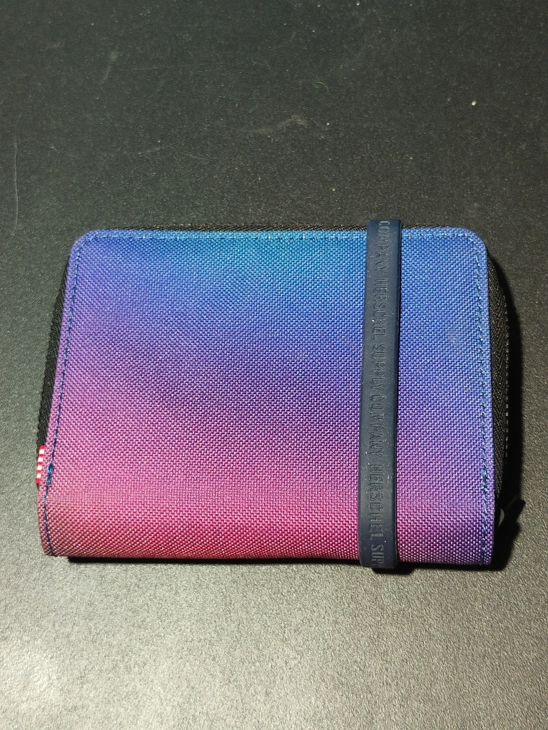 Herschel wallet in gradient colours pink to purple. Comes with a wrist strap.