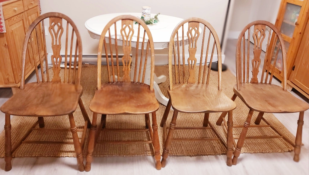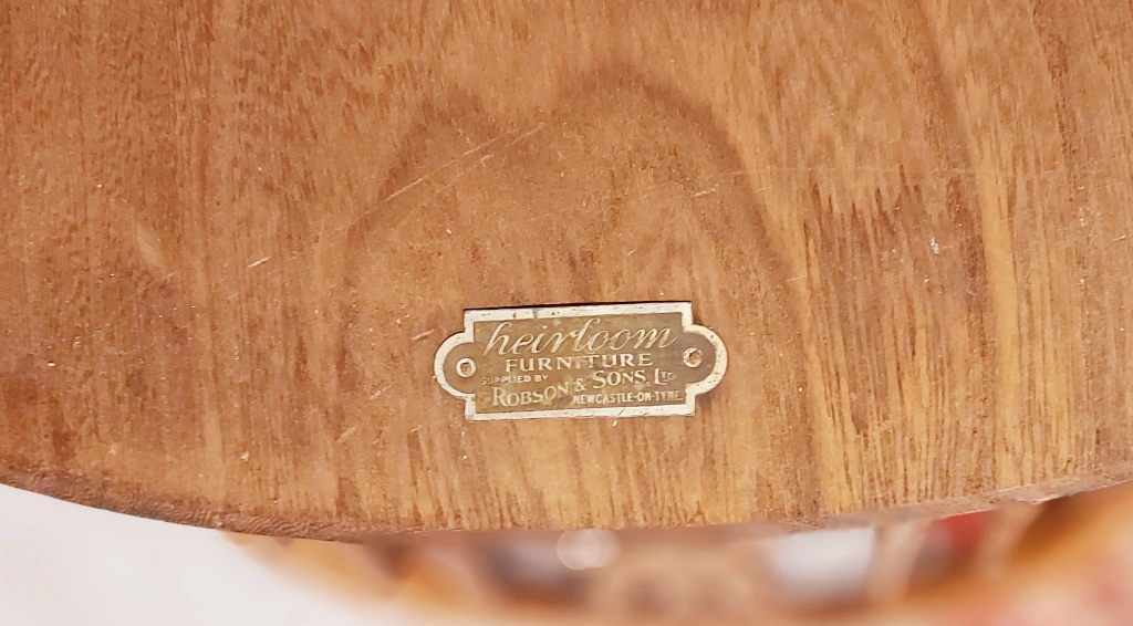 Made by Heiloom FURNITURE SUPPLED BY ROBSON & SONS (see plaque under chairs). This set was brought over all the way from England where they originally used in an English Pub back in the days. True antique circa 1840s/60s.