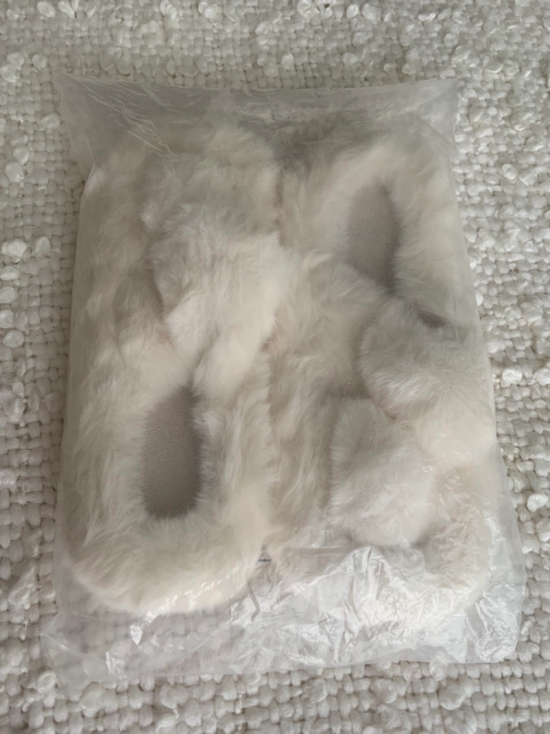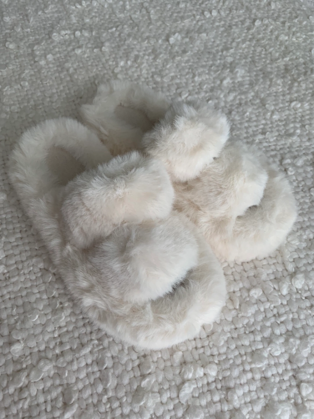 Brand new, never worn! Too late to return, already have in a different color. Cream-coloured fluffy slippers. Soft and cozy. Double band design. Perfect for lounging. US Size 5.5 or EU 36.