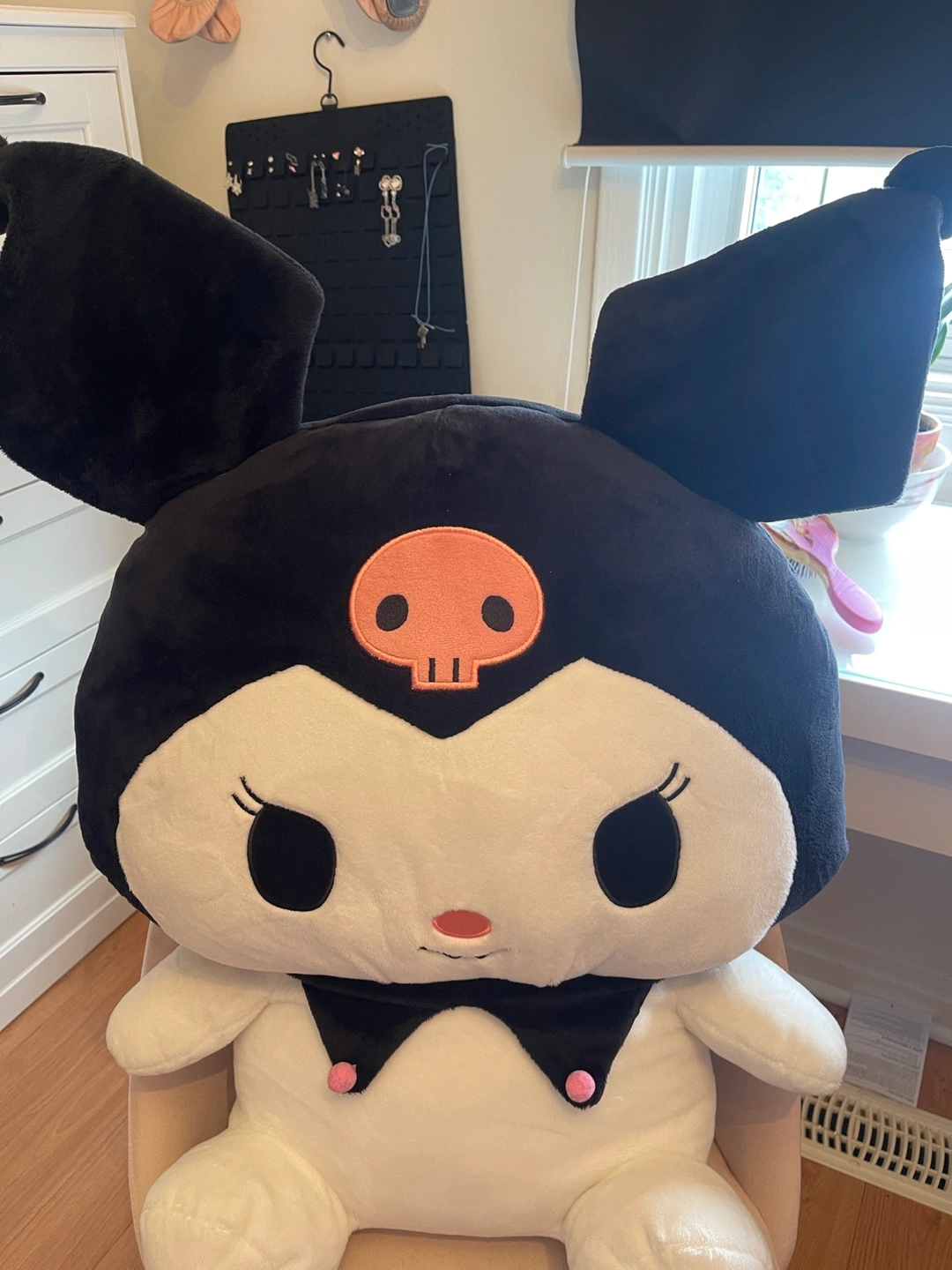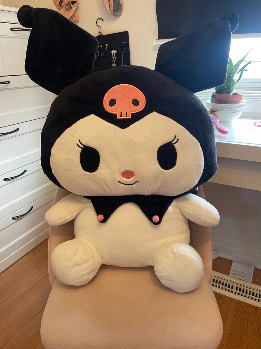 Large Kuromi plush toy. Soft and cuddly. Great for collectors or fans.