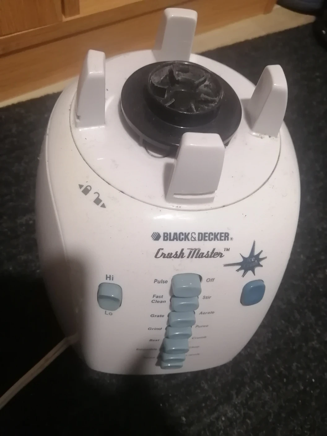 Black & Decker blender Motor for parts. Works perfectly but the connecting plastic chipped off so it can't connect with the jar. If anyone needs it for parts, come get it