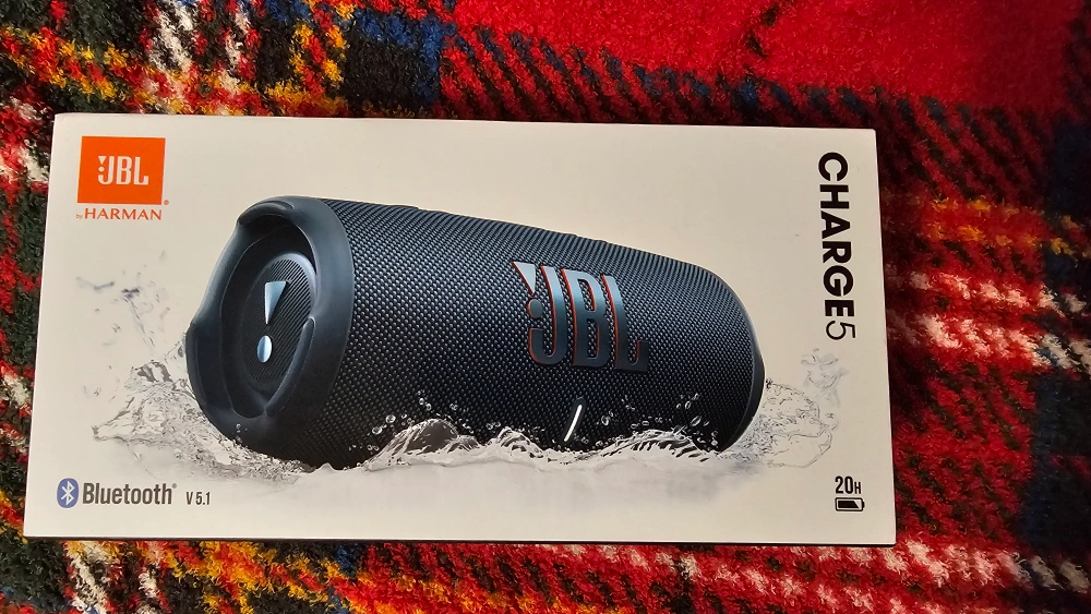 JBL Charge 5 portable Bluetooth speaker. Includes original box and packaging. Long battery life. Water resistant. Great sound quality. Perfect for travel or home use.