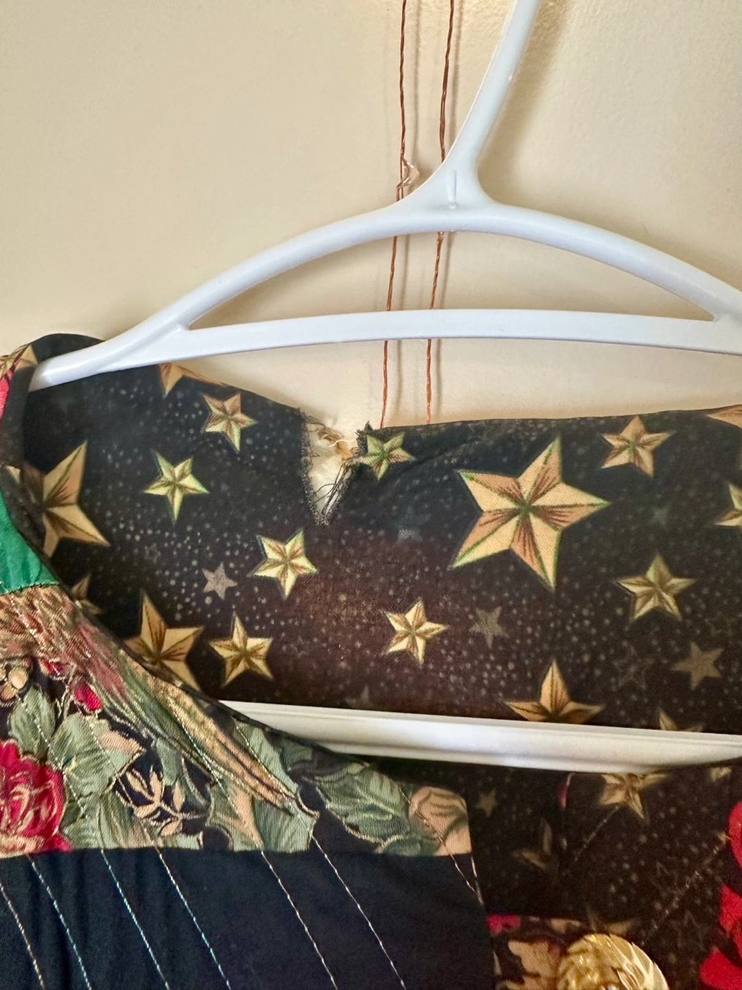 Unique quilted jacket hand made by potentially a really cool and talented grandma out there.