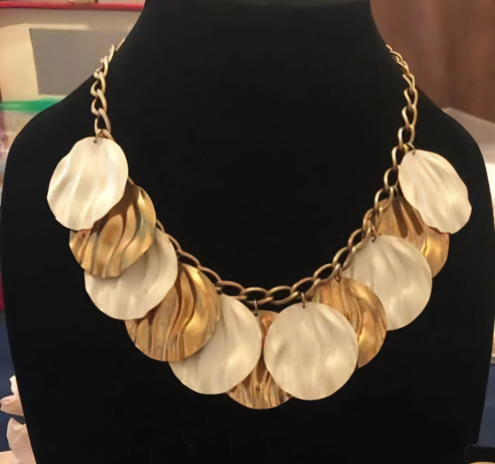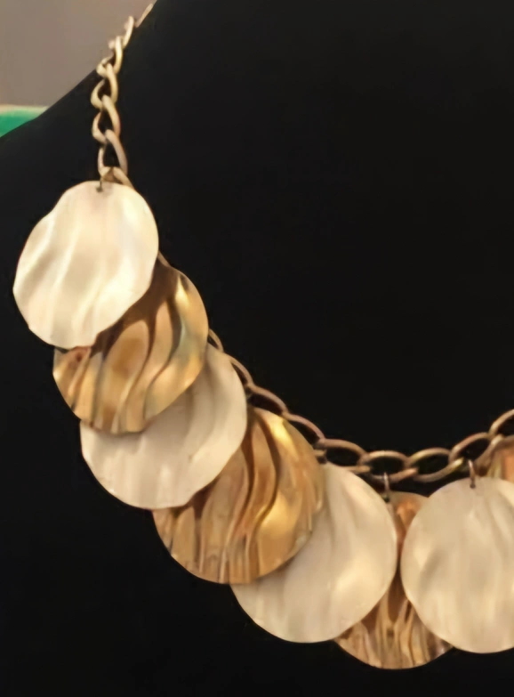 From the Fifth Avenue Collection, featuring alternating gold tone and cream colored discs on a gold tone chain. The Fifth Avenue Collection is known for beautiful high end handcrafted fashion jewelry and this stunning piece is sure to become a summer favorite in your jewelery collection