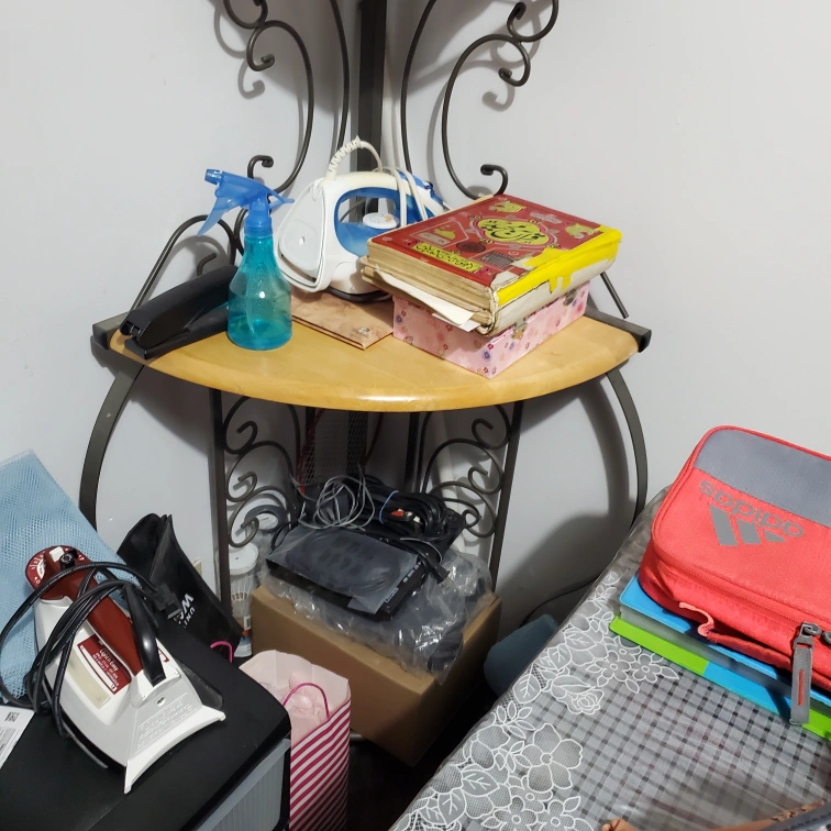It's in good condition. Not really functional for us anymore. There the 1 one wooden shelf and the rest are wire, pretty sturdy.