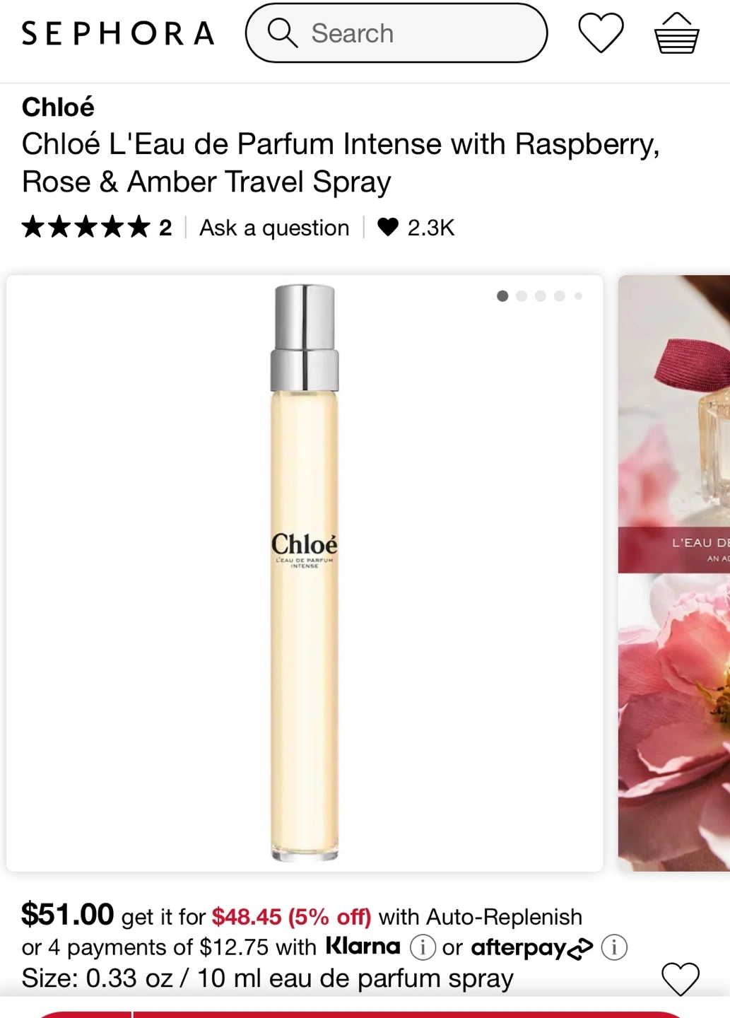 310Chloé Eau de Parfum Intense travel spray. 10ml/0.33 fl oz. Raspberry, rose & amber notes. New, in box. 2 available $29 each Pick up location Northeast Burlington Intersection Appleby line and Dundas Contact free porch pick up Smoke free home 😊