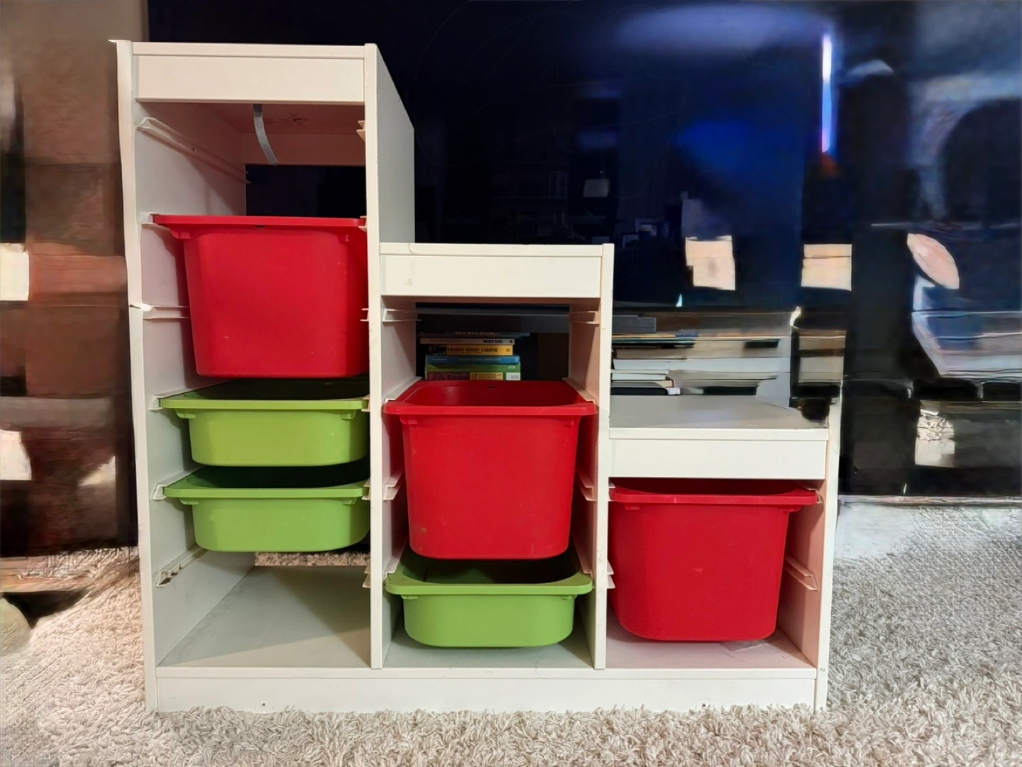 - The frame comes with guide rails, so you can place boxes and shelves where you want them, and change them any time.