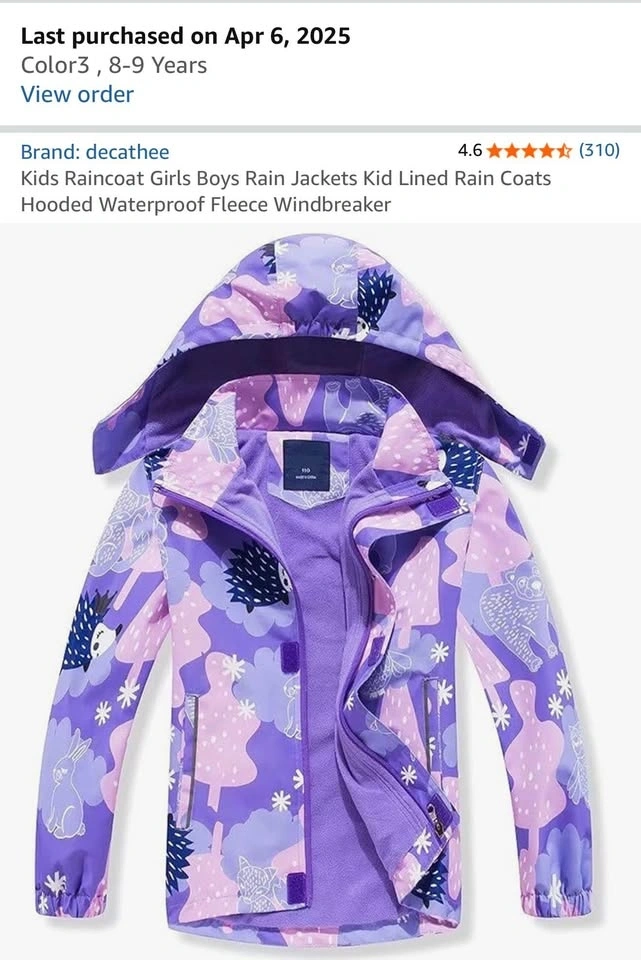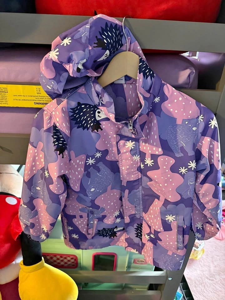 Like new, worn a couple times. Super nice kids raincoat for girls. Lined, hooded, and waterproof fleece. Size 140 (fits 8-9 years). Bought last spring for $40 plus tax.