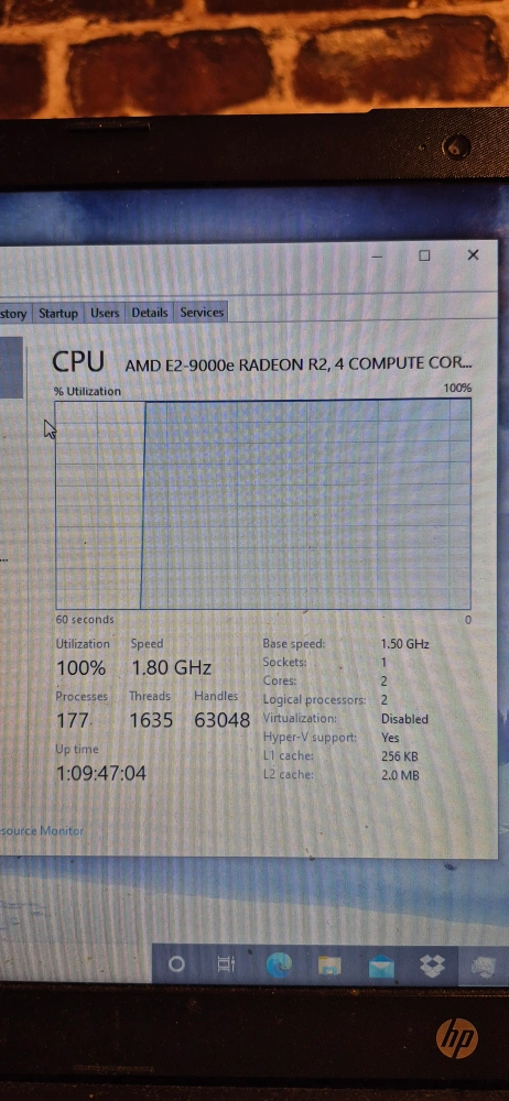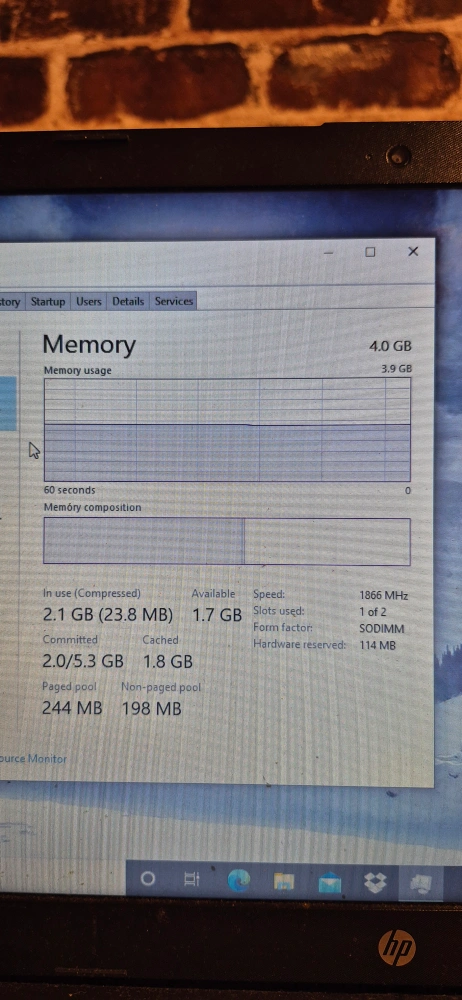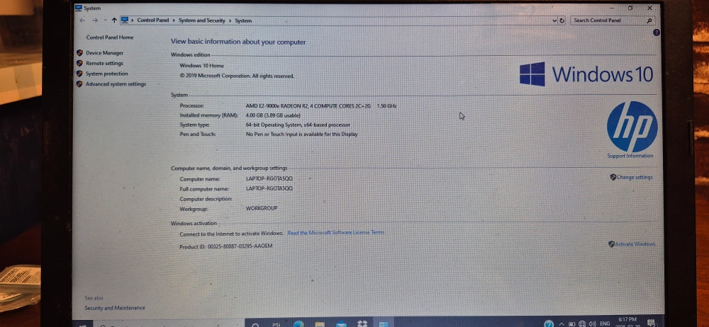 95HP laptop computer. Windows 10 operating system. 233 GB SSD. Includes power adapter. Pre-owned.