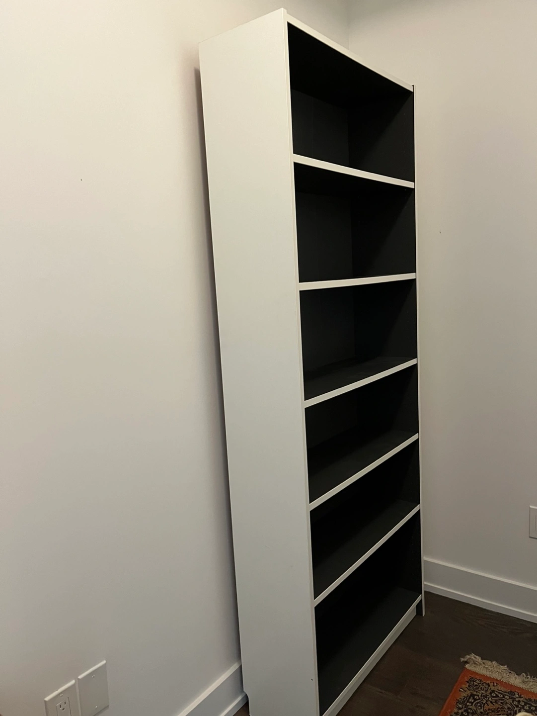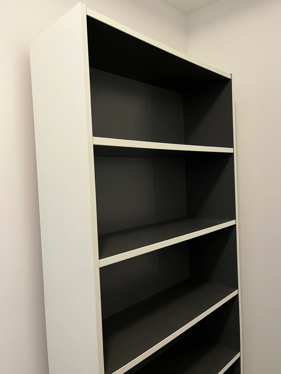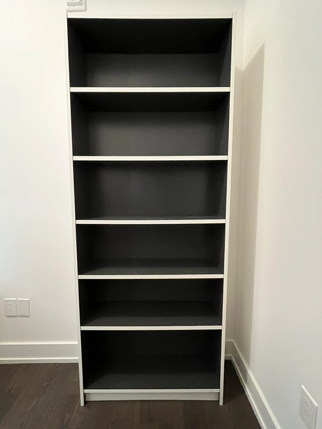 Ikea Billy Bookcase with white exterior and dark grey interior - a colour combo that is no longer sold. In great condition. All shelves except the middle shelf can be adjusted
