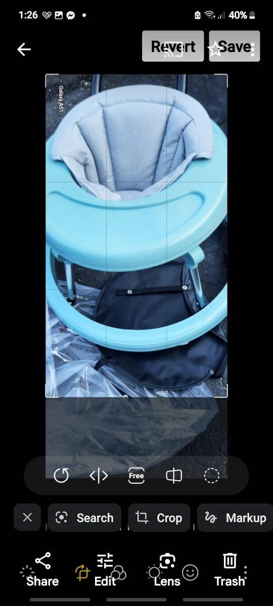 44Baby walker, light blue frame, grey padded seat. Includes a removable tray. New