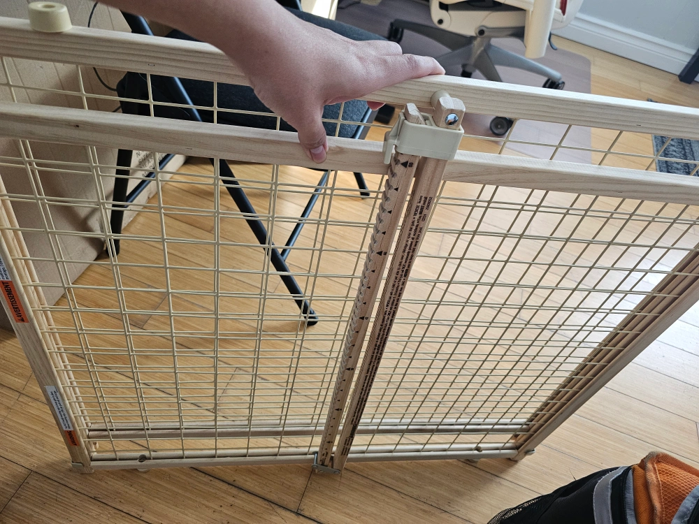 #freecycle Wooden and metal construction. Easy open and close mechanism. Extends to fit various openings. Dimensions in 2nd photo. Good for children and pets.