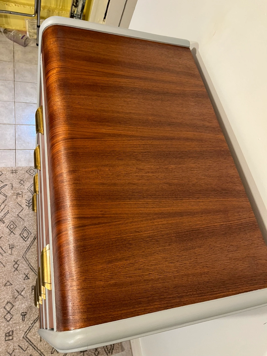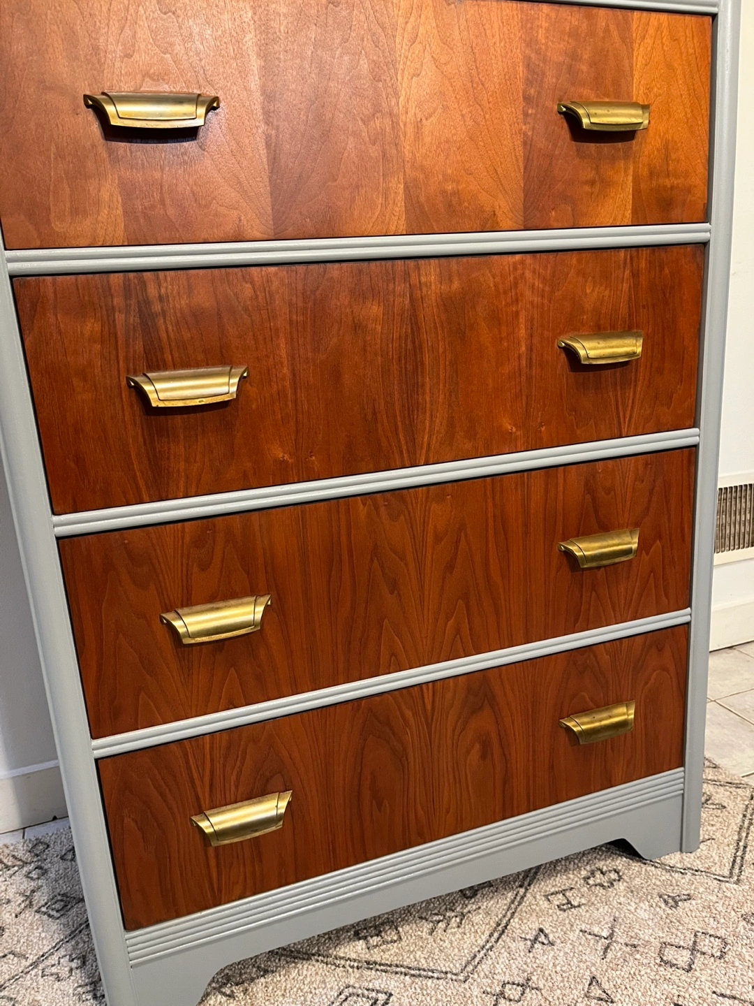 This beauty was made in Vancouver by ‘Restmore’ amazing solid bones with absolutely stunning flowing walnut grain. Original patina to her handles with large,clean , lined smooth drawers paired with a soft grey 👌🏼 message me if you have any questions. Cross posted , firm price and cash only.