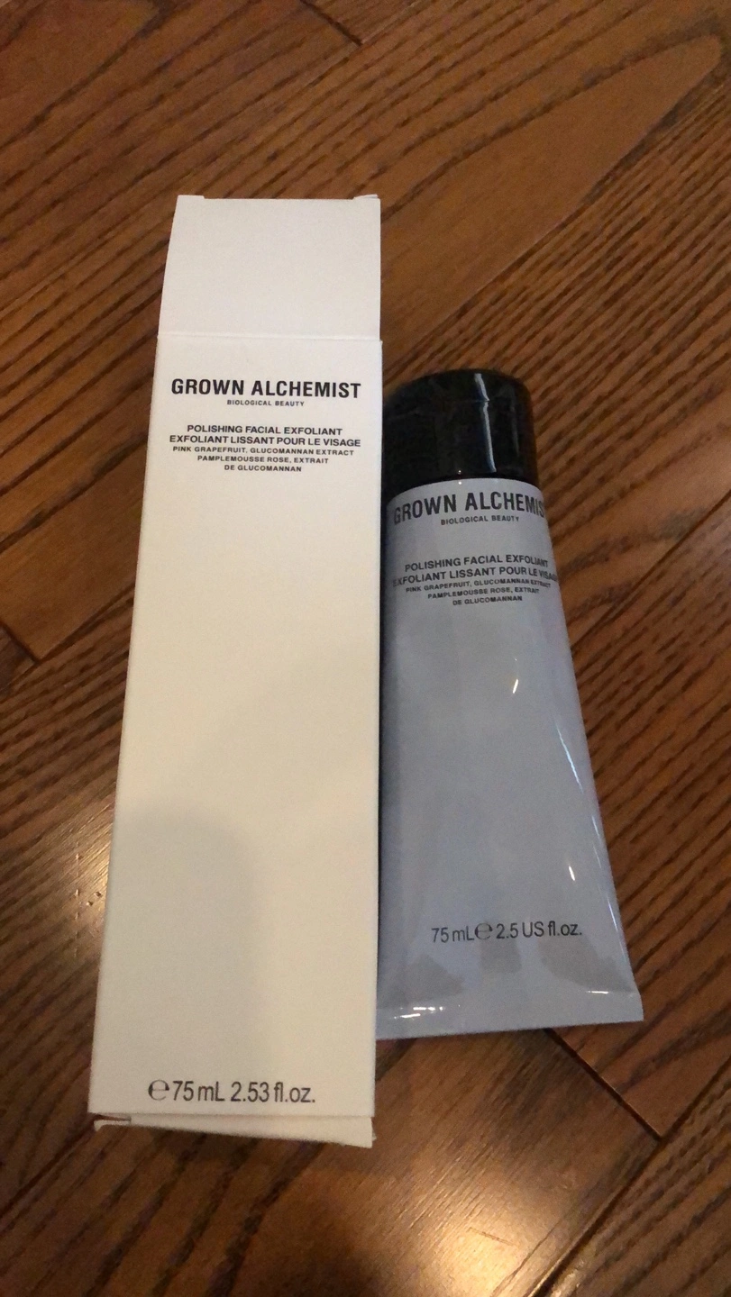 Grown Alchemist polishing facial exfoliant. 75ml tube. New, unopened. Gentle exfoliating formula for daily use. Suitable for dry and dead skin cells. Ingredients include Pink Grapefruit, Glucomannan, and more.