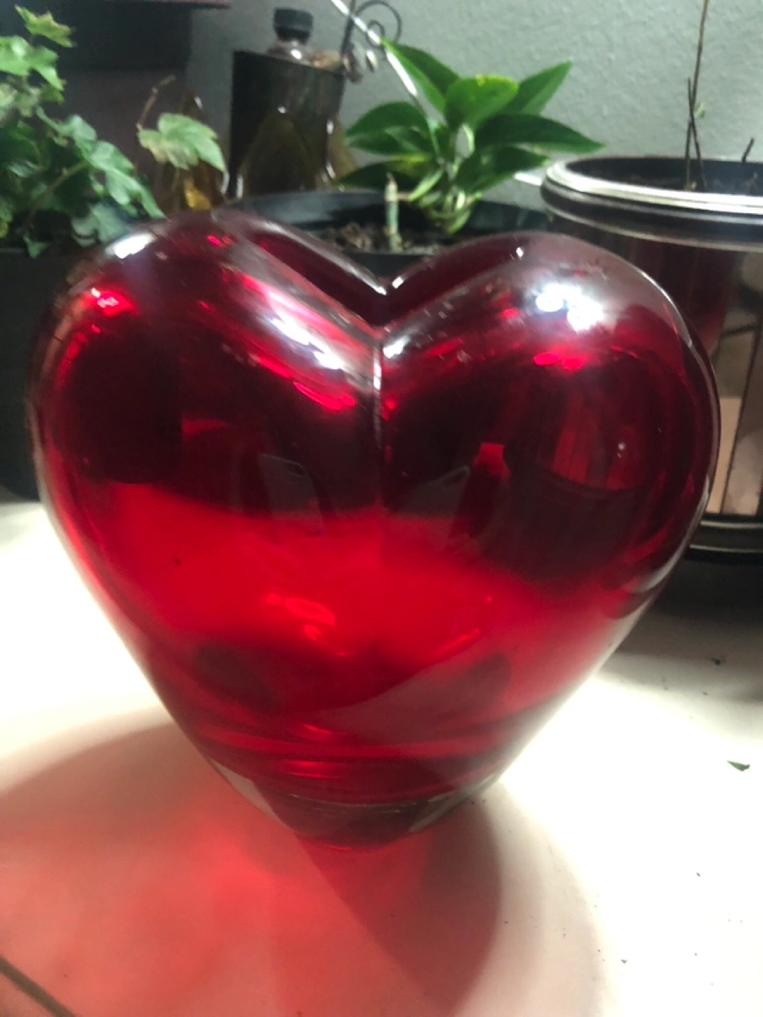 Vintage Murano Style Large Heart. Very heavy. 7” tall and 7” wide at top makes a perfect wedding gift or Valentines gift. Perfect for a romantic setting or as a unique decorative piece. Adds a touch of elegance to any room.